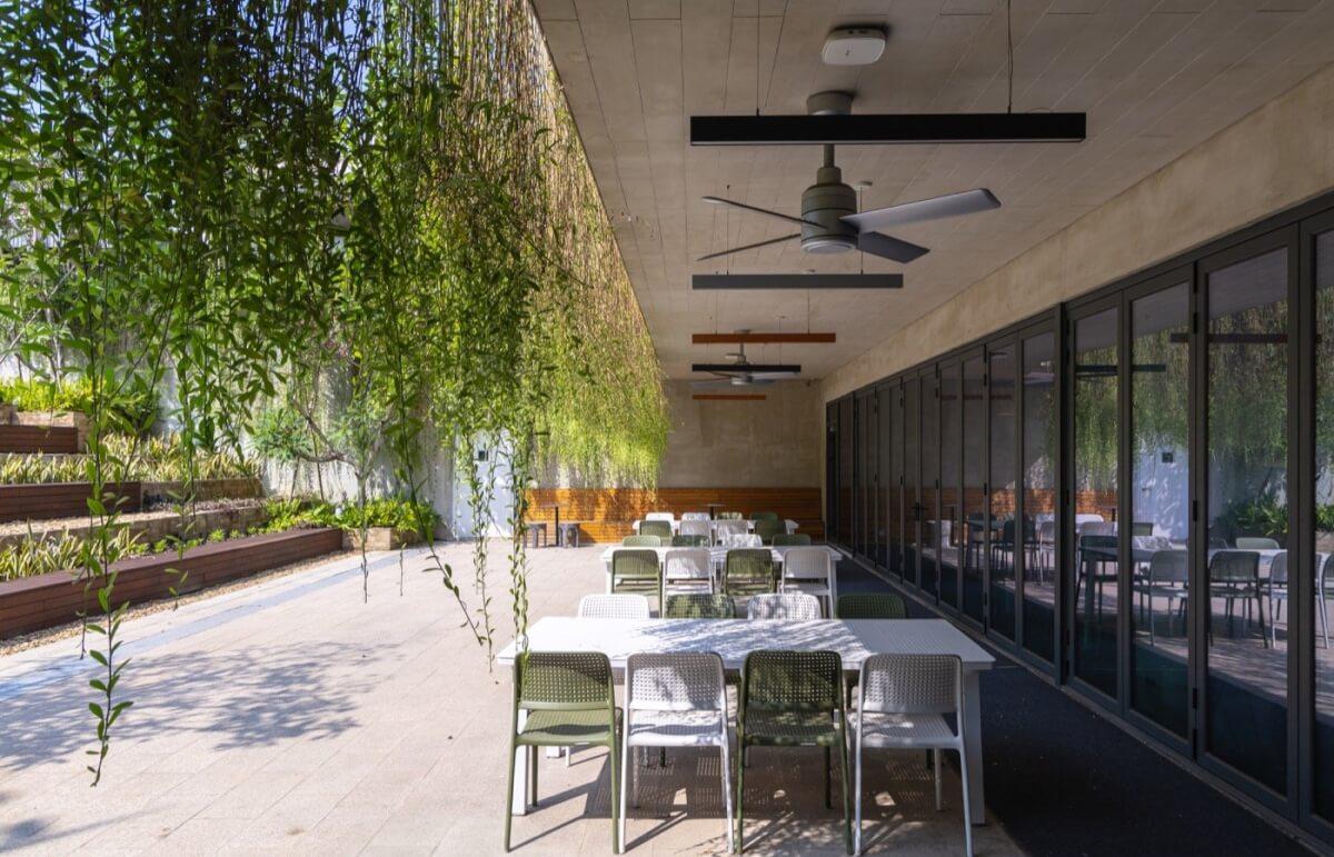 Additionally, we have significantly improved the existing ecosystem by using native plants and adaptive species to ensure resilience and minimal maintenance, while also inviting new wildlife, including birds. This enhances the outdoor spaces by providing optimal thermal comfort and enjoyment, which is crucial in a region where high temperatures and humidity can affect outdoor usability.