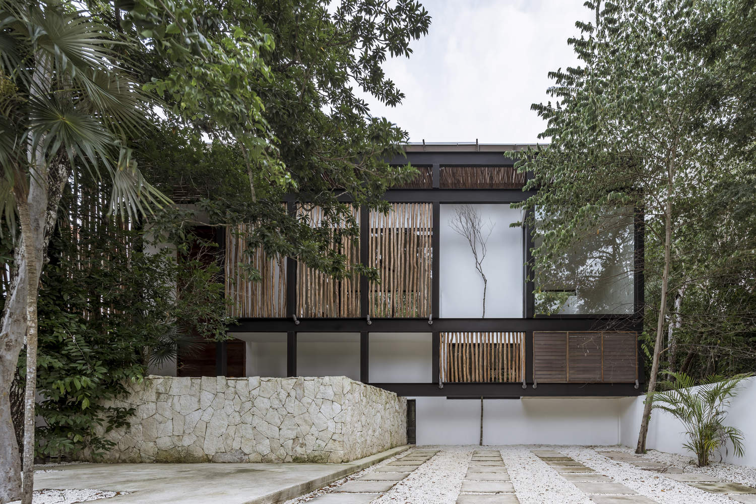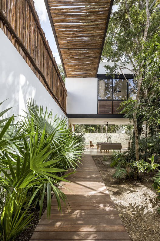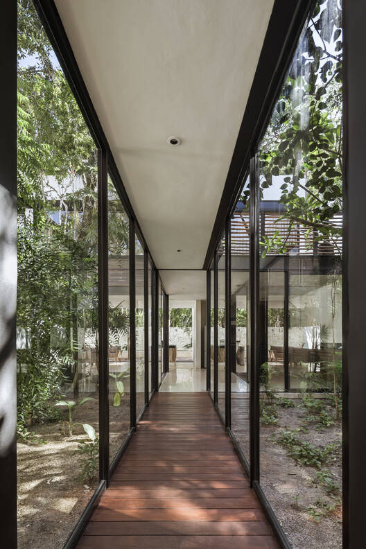 This is a residential house of approximately 340 m² located in the Aldea Zamá community in Tulum, Quintana Roo. The project features a design that always seeks the integration of exterior and interior spaces, creating patios that articulate the spaces and allow views to flow through them towards the rest of the land, which preserves the native vegetation without being altered.