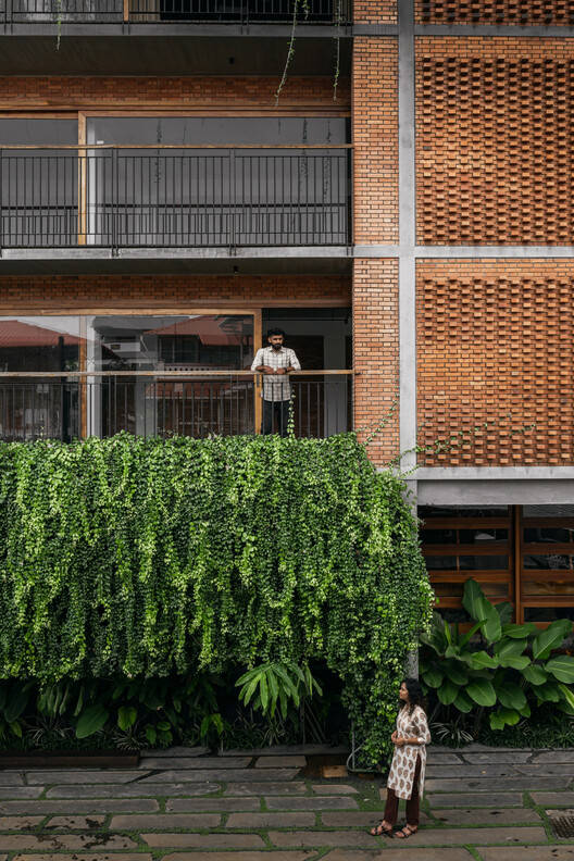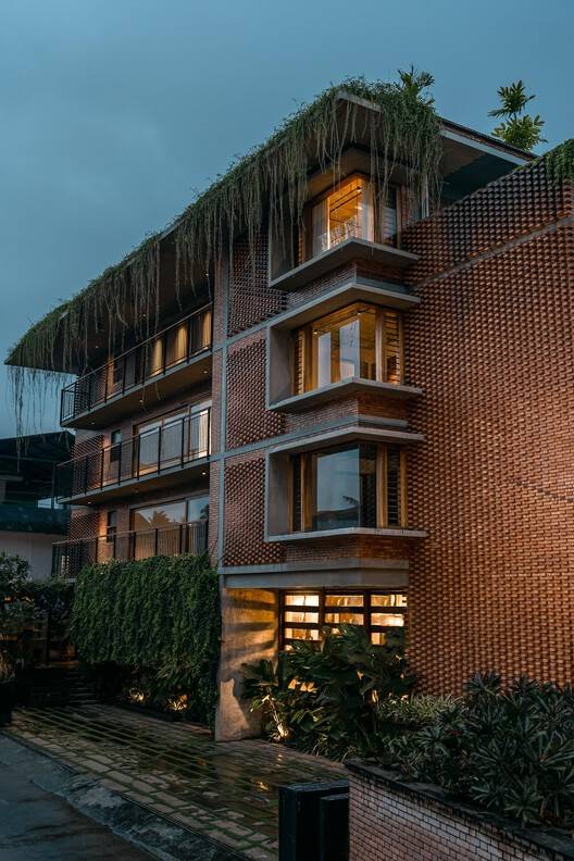 Text description provided by the architects. Located in the heart of Kochi in Kerala, India - TAPAS is a private apartment building that offers a tranquil retreat from urban life. The name "TAPAS" comes from the Sanskrit word तपस्, which refers to a variety of austere spiritual practices, emphasizing self-discipline, reflection, and mindfulness.This concept serves as the foundation of the project, where the architecture fosters a serene environment that encourages residents to embrace a slower, more mindful way of living. Nestled between its natural surroundings and the built form, TAPAS harmoniously blends simplicity, nature, and craftsmanship. The building comprises six apartments spread across G+3 floors and a co-working space on the ground floor.