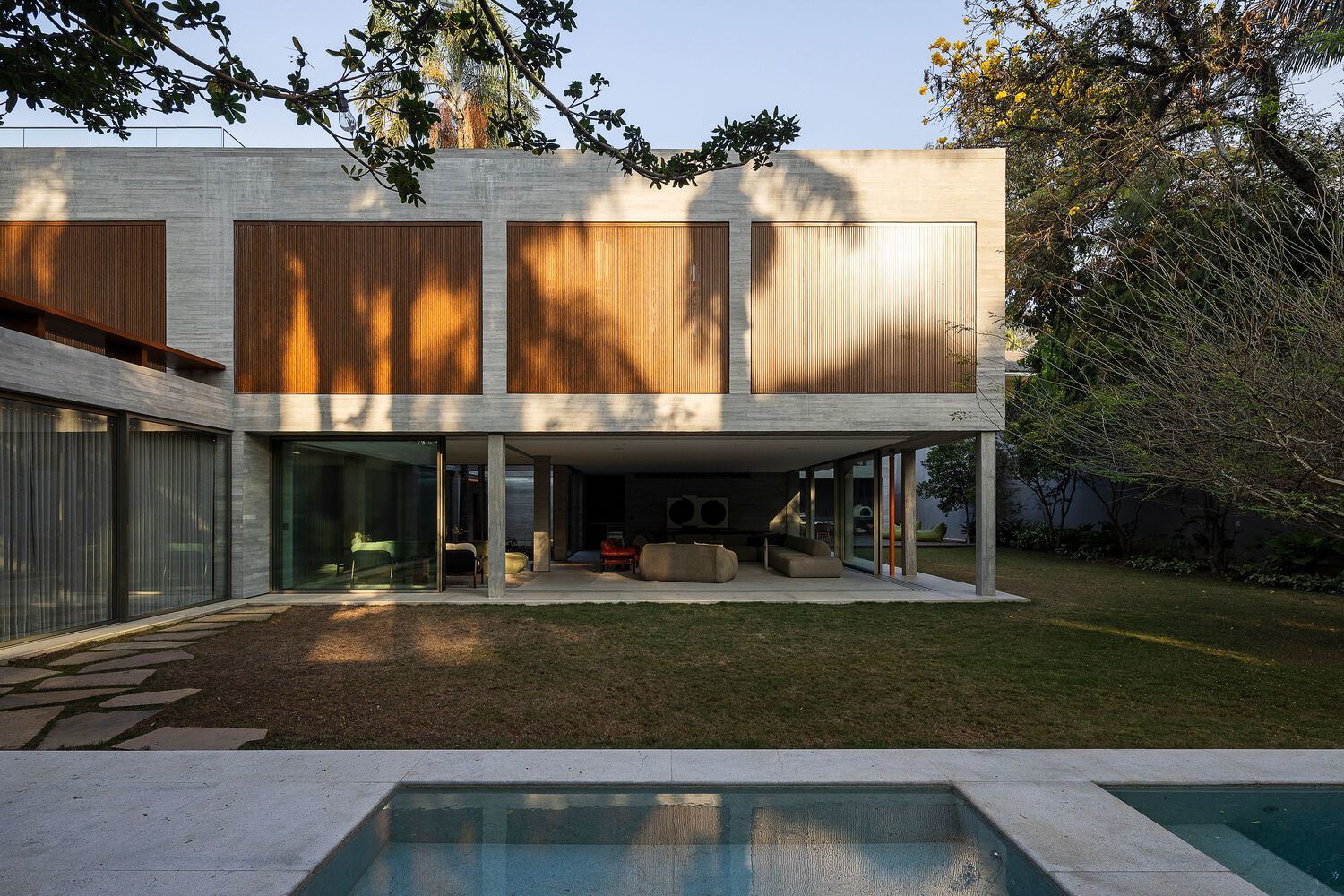 From Diplomacy to Contemporary Family Life. Reinventing an Avant-garde Project, the RDS House has undergone a remarkable transformation, merging history and modernity into an innovative renovation project. Originally designed in the 1960s by Américo R. Campello to serve as the residence of the British Consul in São Paulo, it was later adapted to become the British Consulate in the 1980s. Today, it has re-emerged as a sophisticated home for a 21st-century family.Campello's design, whose structure was considered innovative for its time, was altered and mischaracterized due to changes over the years. Our goal became to reinforce the original volume by restoring the wide and beautiful cantilevers, as well as expanding the internal spaces.