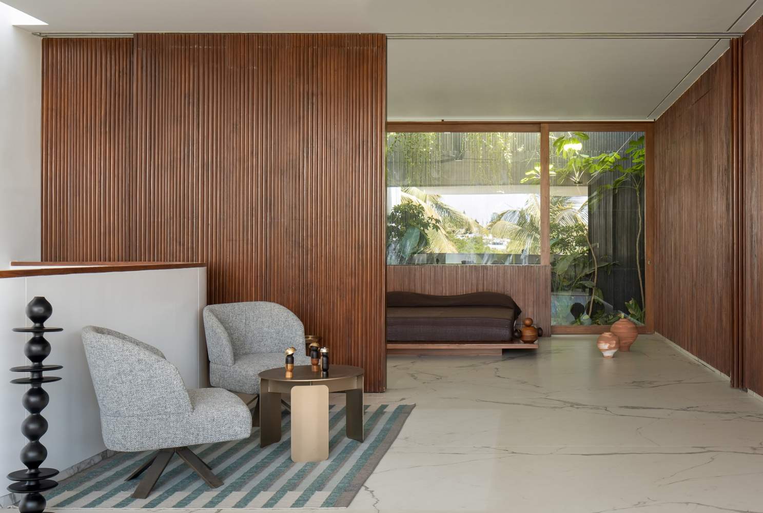"The light is what guides you home, the warmth is what keeps you there" -Ellie Rodriguez.Situated on a north-facing site in Indiranagar, Bangalore; this home is defined by a modern architectural vocabulary, but at the same time, it creates a fine balance by imbibing traditional and time-tested architectural values.