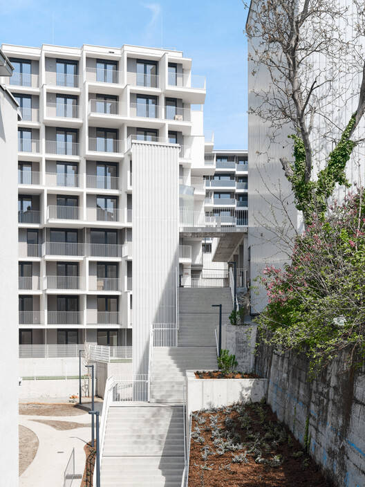 Text description provided by the architects. The urban development area Pen 76 is located in Vienna Penzing on the site of the former Siemensgründe – the company's former headquarters. On the one hand, the former Siemensgründe is characterized by its green "insular location." Shielded by a large-scale perimeter block structure, this is a park-like landscape in a quiet setting. At the same time, the upper floors have a fantastic view far over Vienna and of Schönbrunn Palace. The terraced plot with the adjacent green spaces and the all-enclosing perimeter block development enables the development of a noise-protected park & garden area for all residents. This quality is reflected in each separate building in a very individual way. Four buildings will be placed on the site according to the current development plan of the City of Vienna. Each building will be worked through according to the quality of its location on the one hand and the underlying marketing concept on the other. The result is an ensemble of separate buildings that nevertheless form a self-contained unit.
