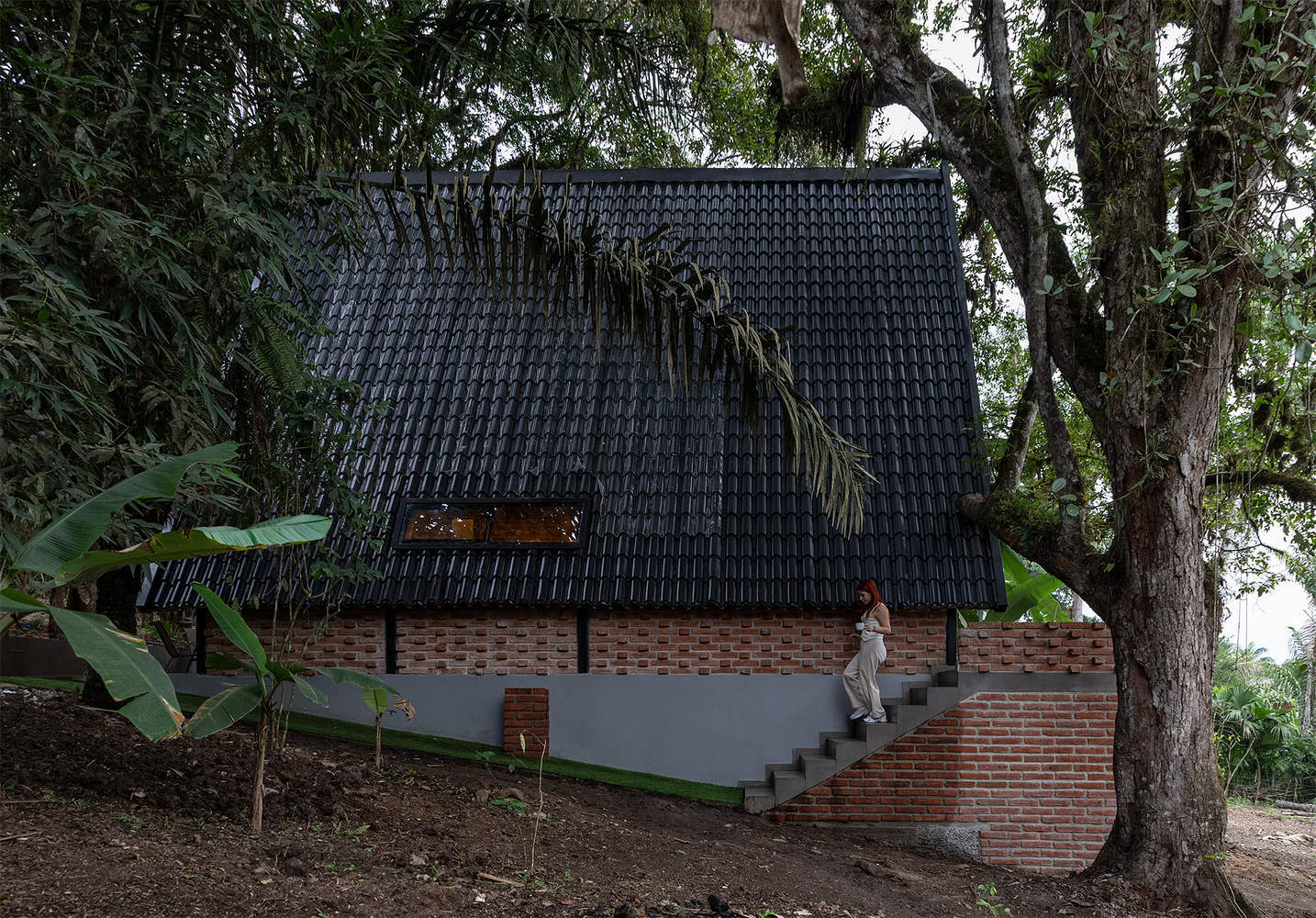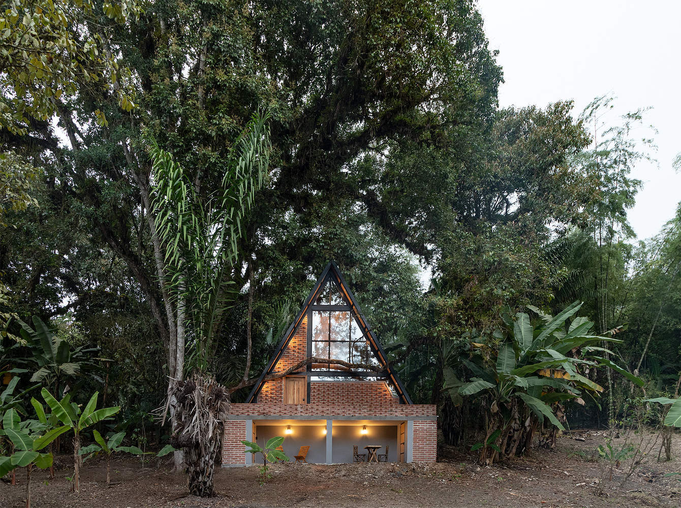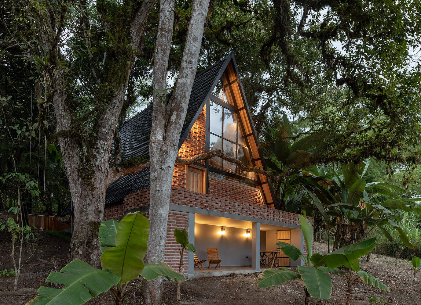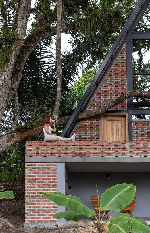 The central architectural idea was to conceive the cabin as an extension of the landscape, using a minimalist approach and natural materials that would not only respect the environment, but also accentuate the beauty of the forest. The structure is raised on a cement plinth, adapting to the slope of the terrain, which not only protects the cabin from humidity, but also ensures its durability and stability. Wood, brick, and steel were combined to create a structure that is at once solid, warm, and visually appealing to keep the focus on the serenity of the surroundings.