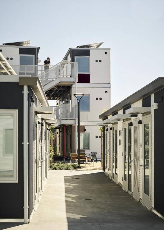 Text description provided by the architects. The San Mateo County Navigation Center represents the first built instance of the Office of Charles F. Bloszies's "Step(1)" interim supportive housing system, derived from the modular concept developed for the award-winning Mountain View Homekey facility. This project does not consist of "tiny homes" – the clients' sleeping units are private quarters within the larger complex with shared amenities, services, and exterior spaces that comprise a supportive community.
