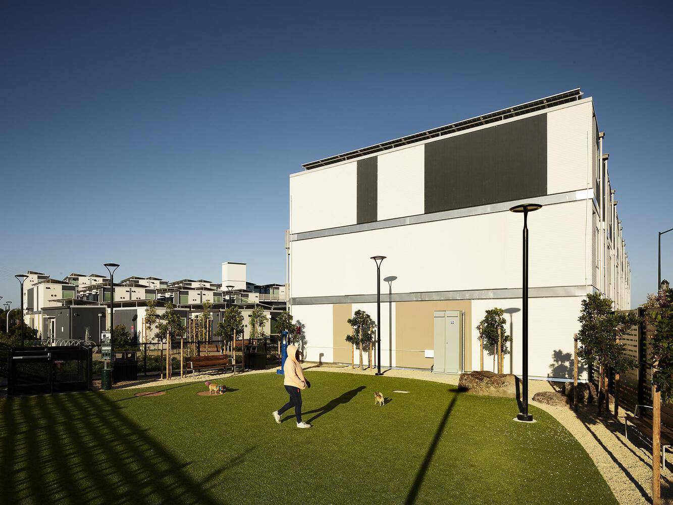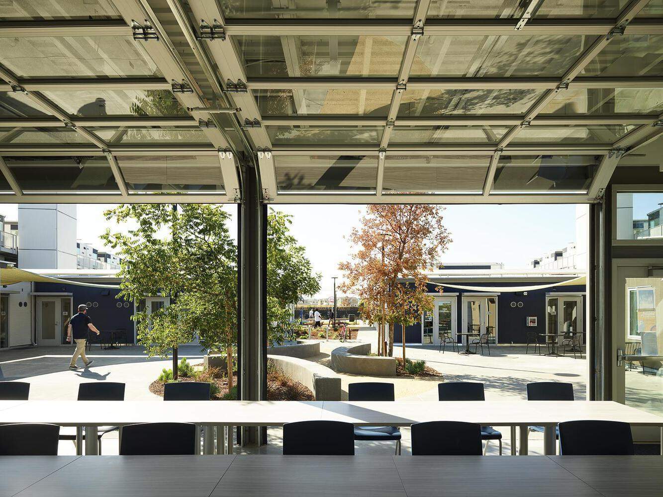 一个现场建造的结构包含两个大型社区房间;另一个是带商业厨房的餐厅,将为该地区的所有运营商设施提供服务,并将用于培训客户未来在烹饪行业的就业。车库门将这些大型聚会空间与外部的景观广场相连,扩大了潜在的聚会区域,使内部和外部融为一体。通过在场外制造其余结构所获得的效率,使这些建筑能够按照传统方式建造,而不会影响项目的总体进度。施工仅用了一年多的时间就完成了。