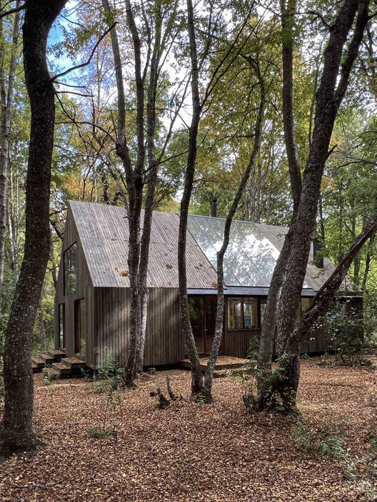 Text description provided by the architects. The commission consisted of a small house to enjoy the beauty of the Maulino Forest in the Andes Mountains, in the Central-Southern Zone of Chile. The location is an oak forest, situated at an approximate altitude of 950 meters above sea level.