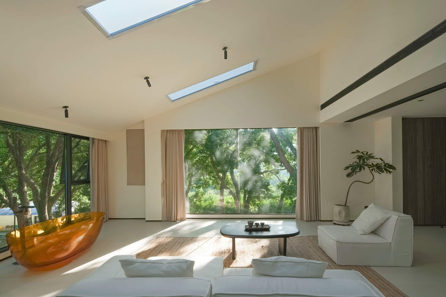 Eight uniquely laid-out rooms offer distinctive views, Interior decor is simplified, using "nature" to enhance the space. The Bridge connects three courtyards, weaves through the buildings and trees, serving not only as connectors of space but also as "bridge" between people and architecture, as well as between people and nature. On the east and west sides of the Healing Hills Villa, there are Heartwarming Creation Workshop and Hollow Coffee as supporting spaces.