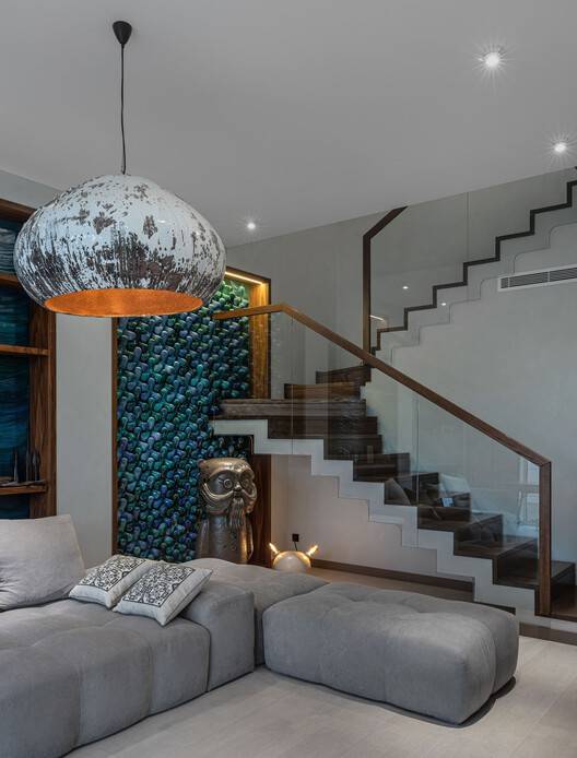功能与艺术的完美结合:房子不仅在设计上独具特色,还充分考虑了功能性。儿子的卧室、婴儿房、儿童客厅、图书馆、工作区等各个功能空间划分明确。同时,通过自然光线的利用、独特的灯具和瓷砖装饰,为每个空间营造出不同的氛围。无论是舒适的休息区还是充满创意的工作区,都展现出设计的精心与细腻,为居住者提供了一个既实用又美观的生活环境。