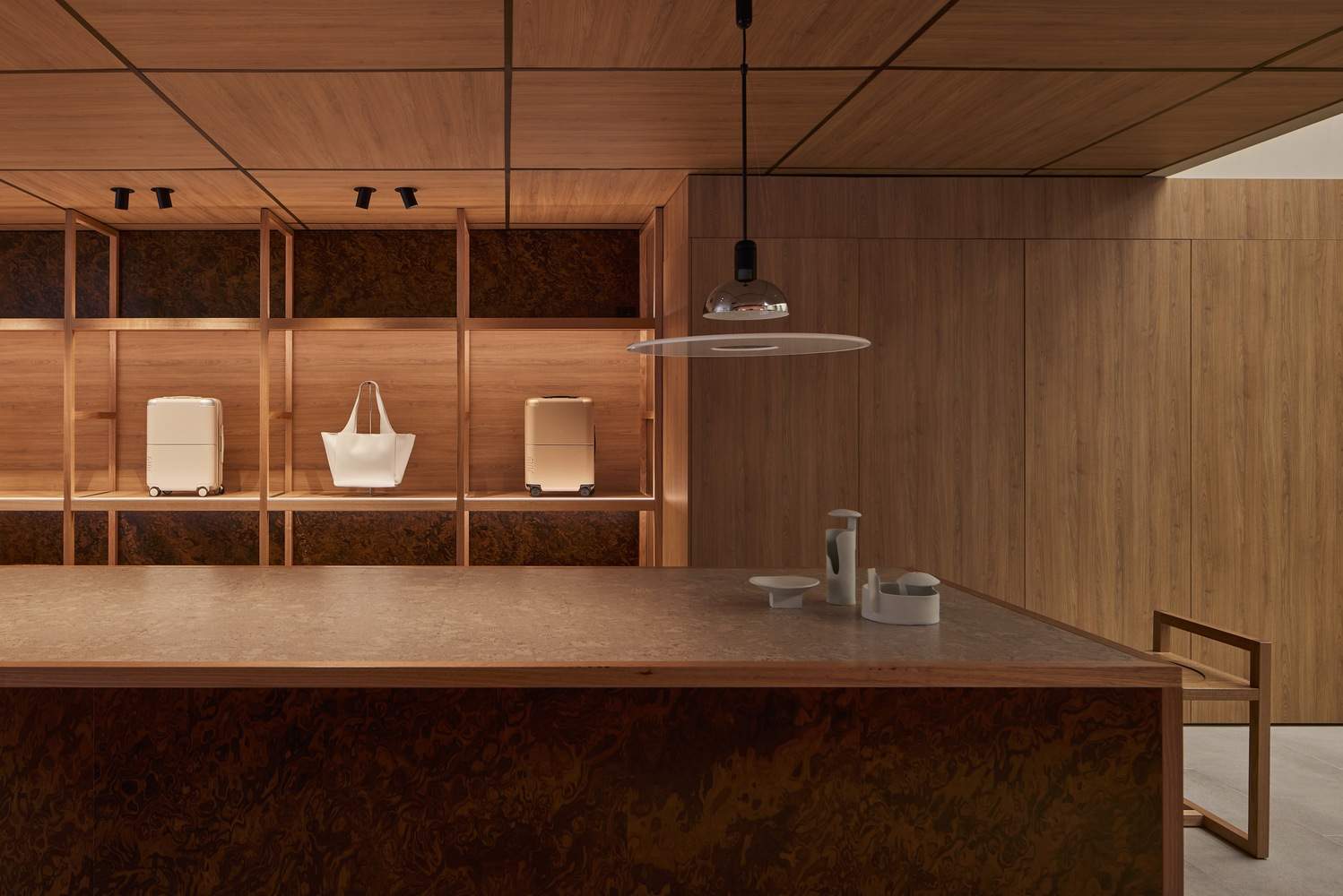 Embodying the brand hallmarks of the Australian luggage label, the store embraces a seamless, considered, and detail-focussed identity, executed with mid-century inflections. Cork paneling, solid timber detailing, and playful color accents reflect the luxury and nostalgia of travel, encouraging customers to recall memories of their most cherished destinations while evoking curiosity at every turn.