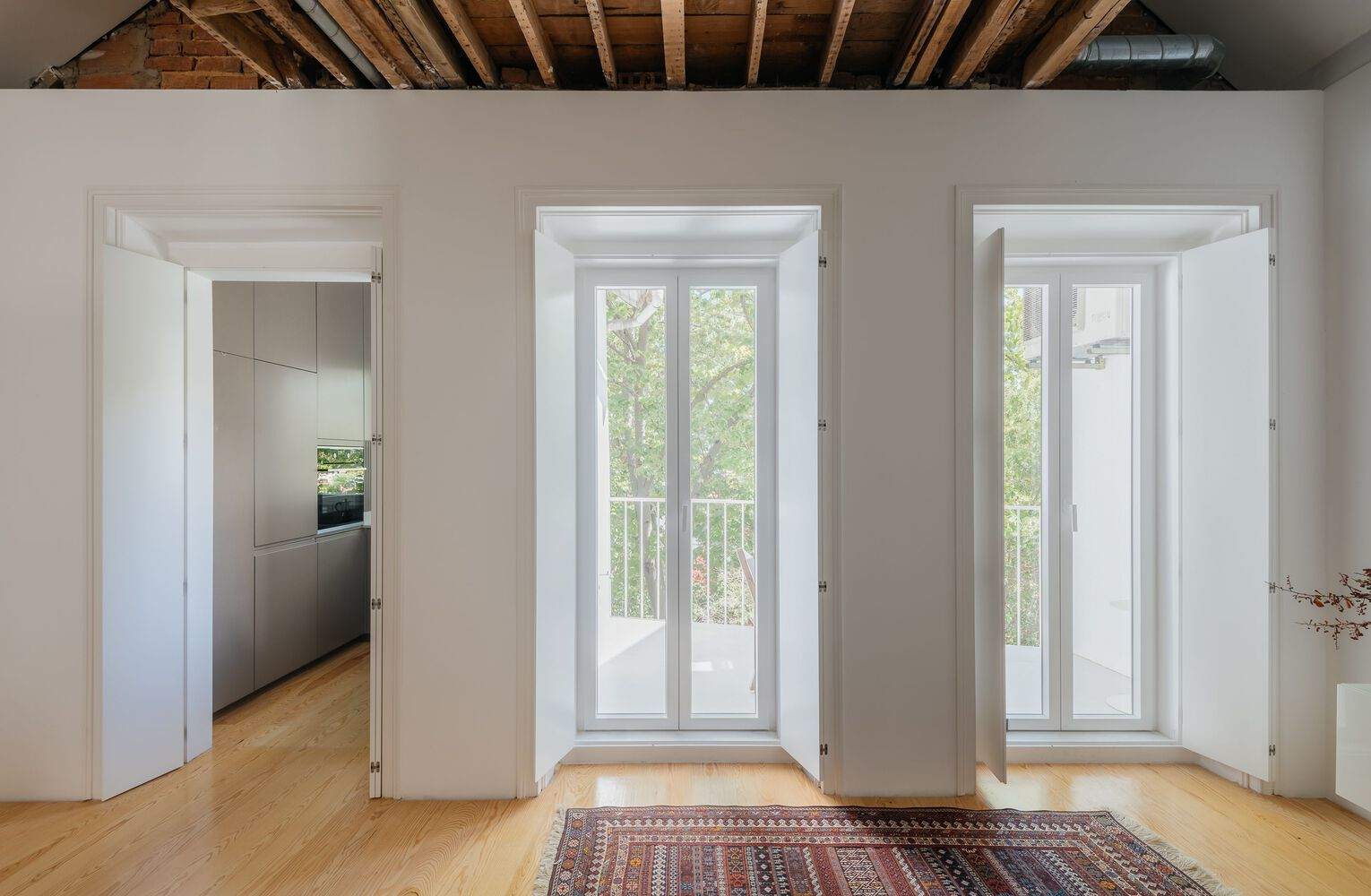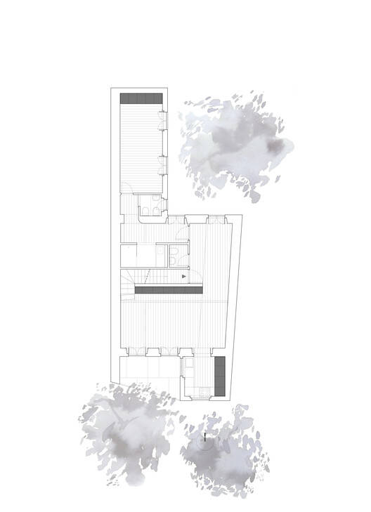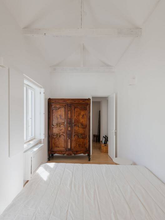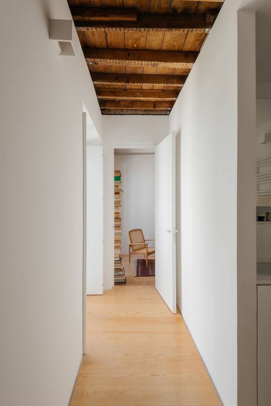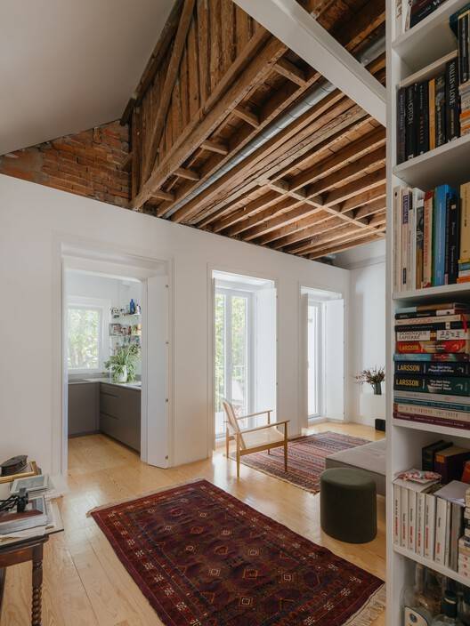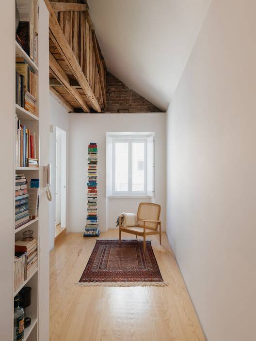 Text description provided by the architects. At the back of the backyard of a typical late 19th century caged building located near the Estrela Basilica, there is a chalet nestled between the backyard and the canopies of a neighboring garden. The time and construction system are the same as the building that serves as an entrance, but not the scale. The cottage could have been the back annexe, but instead it had become the hidden gem within the tree-lined block.