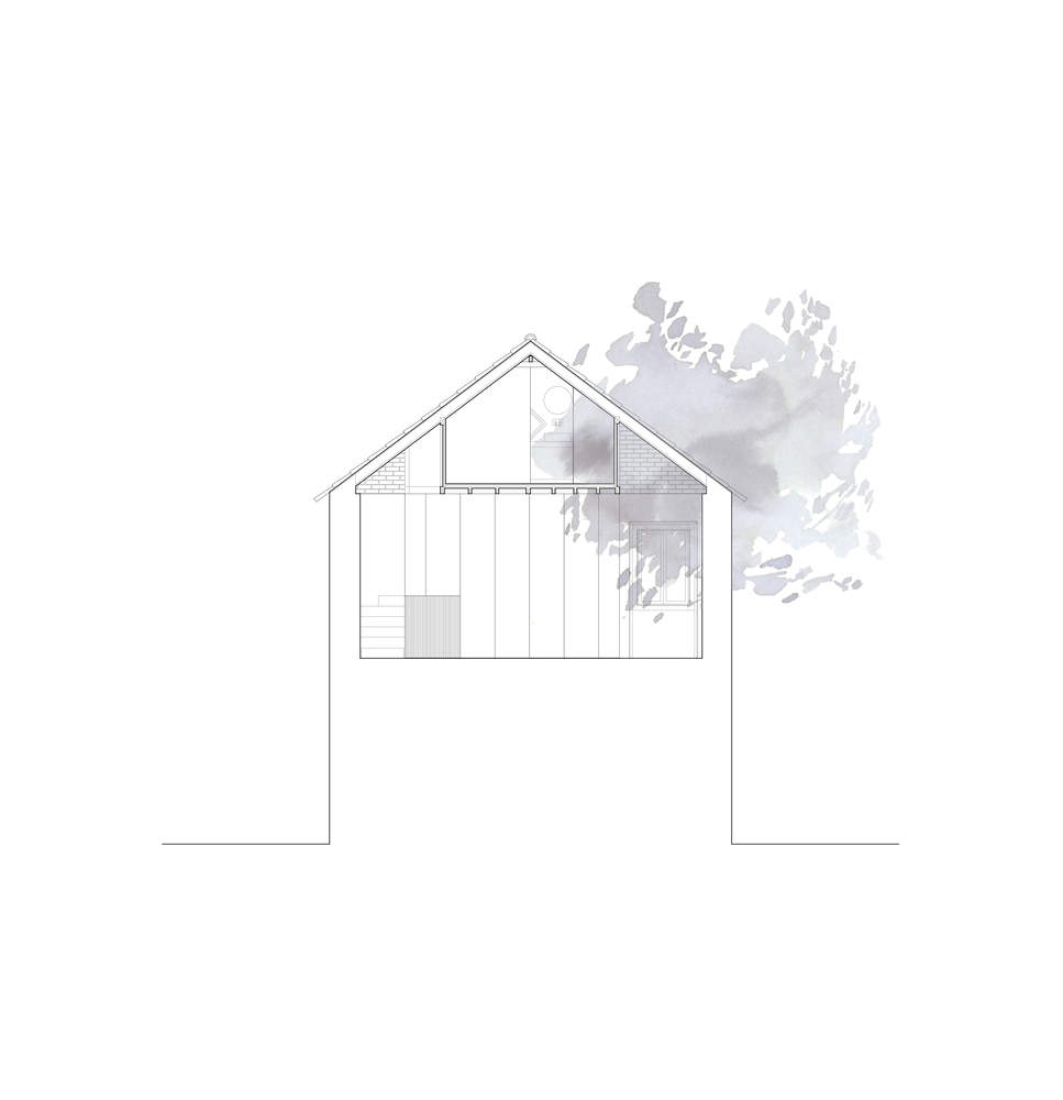 小屋由两层南北朝向的主体和一个面向东北的延伸部分组成,该延伸部分偷走了建筑后院的一部分,小屋的空间过于分散,已经突出了其最大的特点:从内部看,一切都是光明和绿色的,一切都很安静。