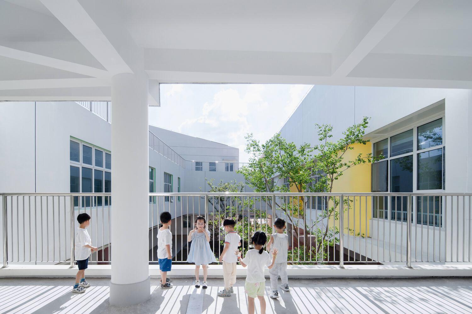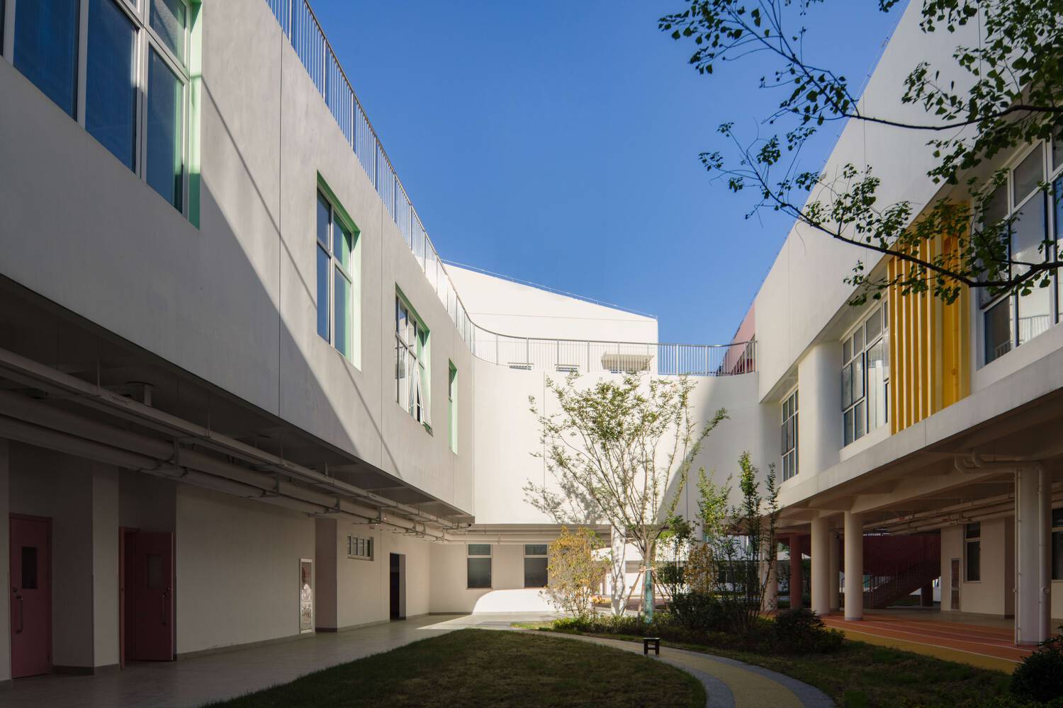 The ground-floor classrooms connect directly to the courtyard, and the corridor space provides a spot for children to gather briefly and shield them from wind and rain. The design features a flexible, spacious multifunctional area, including a two-story high multifunctional room that accommodates various activities. This space is versatile enough for children's artistic and athletic displays, as well as future community gatherings, fostering social interaction and enhancing community cohesion. Throughout the design process, the client engaged relevant department heads, teachers, and community members to discuss and refine the details of the plan. This involvement has increased the future users' sense of ownership and ensured that the design truly meets their needs. To achieve rapid construction and expedite the opening of the kindergarten, each classroom unit has been modularized. The project also incorporates a smart building management system that automatically adjusts lighting, air conditioning, and ventilation to optimize energy use.