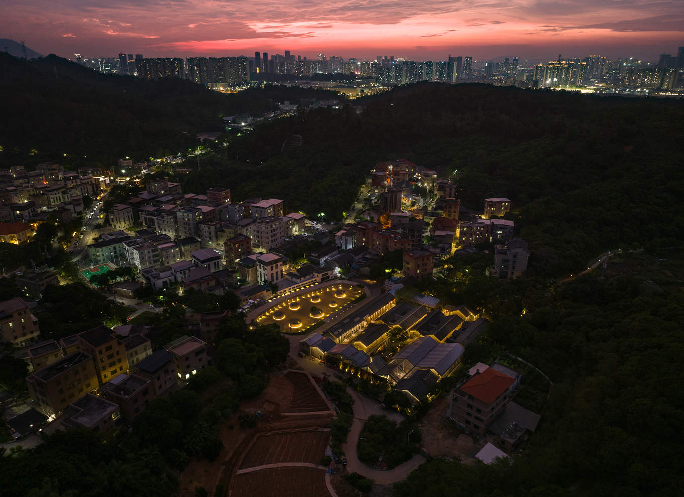 Text description provided by the architects. Preface. China's rural revitalization initiative emphasizes leveraging urban resources to support rural development. A key strategy involves developing tourism to attract capital and industries, foster cultural engagement, promote population retention, and facilitate the settlement of new residents in rural areas. Integrating cultural projects into rural settings is a new attempt in this regard. In Changshou Village, located in the Pingshan District of Shenzhen, the esteemed Chinese performing art studio, Longma Studio, has embarked on an experimental endeavor to establish a theater commune. This commune is intended to serve as a hub for regular rural art performances, encompassing the entire process from creation and rehearsal to staging dramas. To support this endeavor and accommodate the increasing number of audiences and tourists, architect Zhu Xiaodi was commissioned to steer the village's overall planning and the design of key areas.