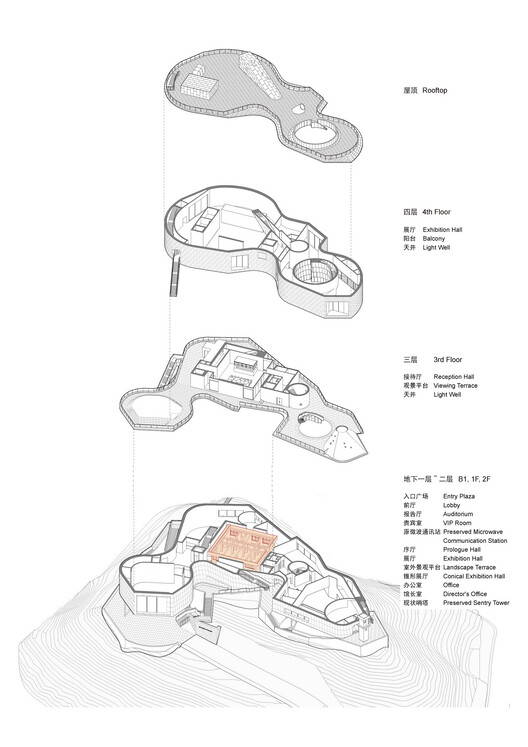 The design of the museum began with an investigation of the original site of the terrestrial microwave relay station. By comparing historical drawings and conducting on-site surveys, the original structure of the station was identified within the existing buildings. By peeling off the additional walls added through multiple renovations, the original building was restored, and the foundation was reinforced, making it the most historically significant exhibit in the museum—a "ready-made" artifact.