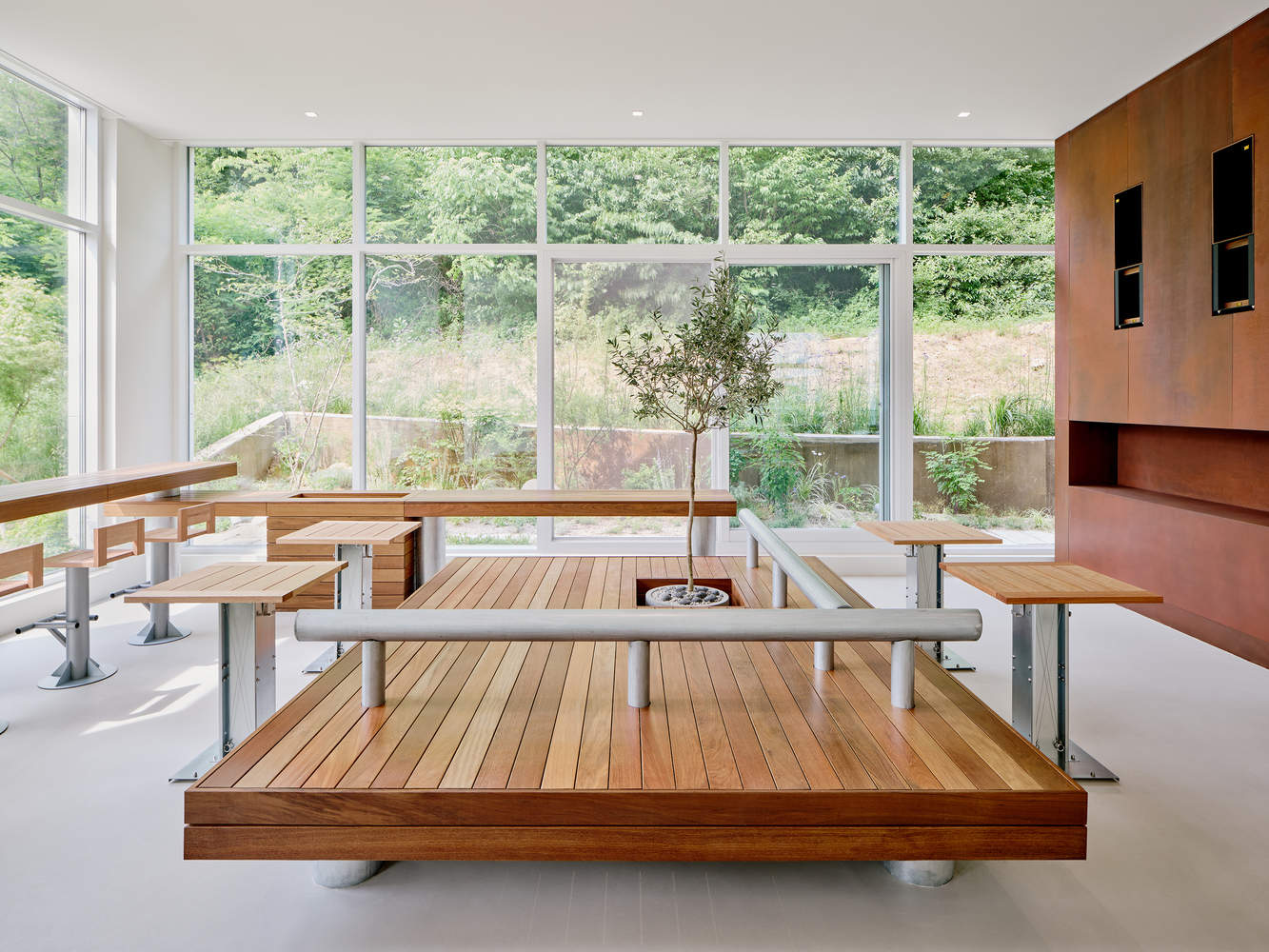 When you open the handle that seems to press the password on the door, the space on the first floor (house) welcomes customers. The sequence is switched as you move past the space on the first floor (home) and up to the second floor (yard). The elements of the corten fence that can be seen from the outside induce movement, and the gaze is designed so that you can feel nature in all seats.