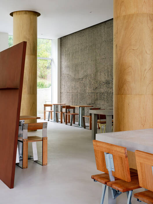 它被拆除在现有建筑物的墙上,混凝土碎片自行垂直处理。这是夏尔巴工作室的语言,它展示了一个直观的图像,这样你就可以想到柏林墙,并创造出一个自然的建筑形象。