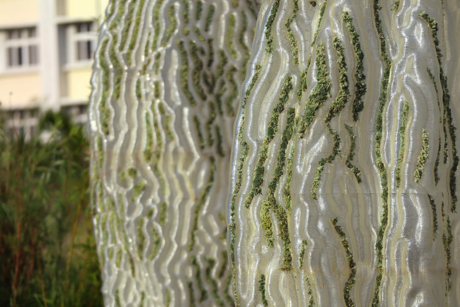 Mosses, chosen as the primary plant for these experiments, are suitable due to their non-vascular nature, which means they do not grow tall like other plants and use roots solely for anchoring rather than nourishment. To investigate high-res and complicated patterns for embedding, geometry is manipulated and generated through computational design tools. Advanced construction technologies are employed to realize the complex forms: such as a large-scale 3D printer with an industrial robotic arm.