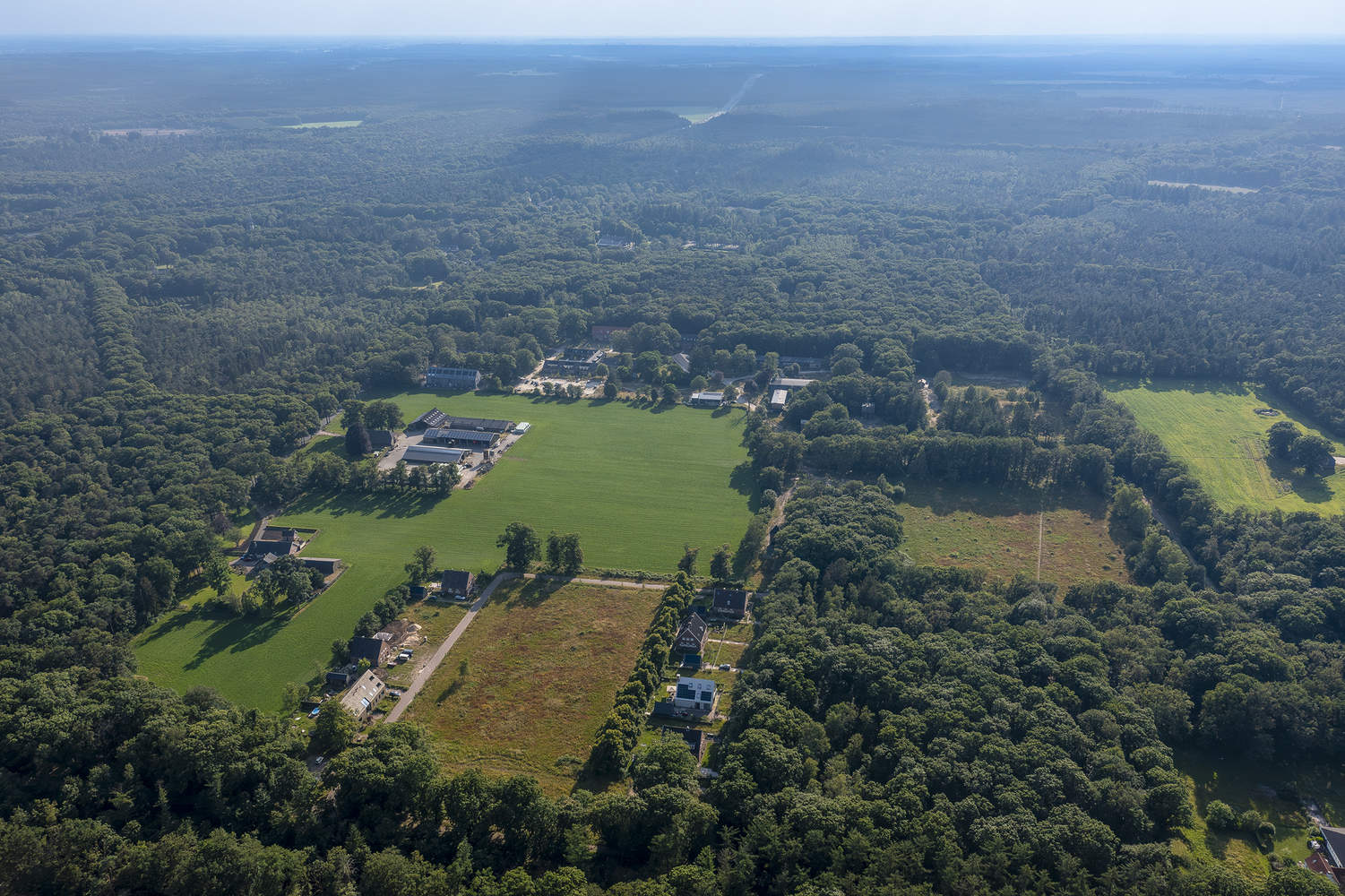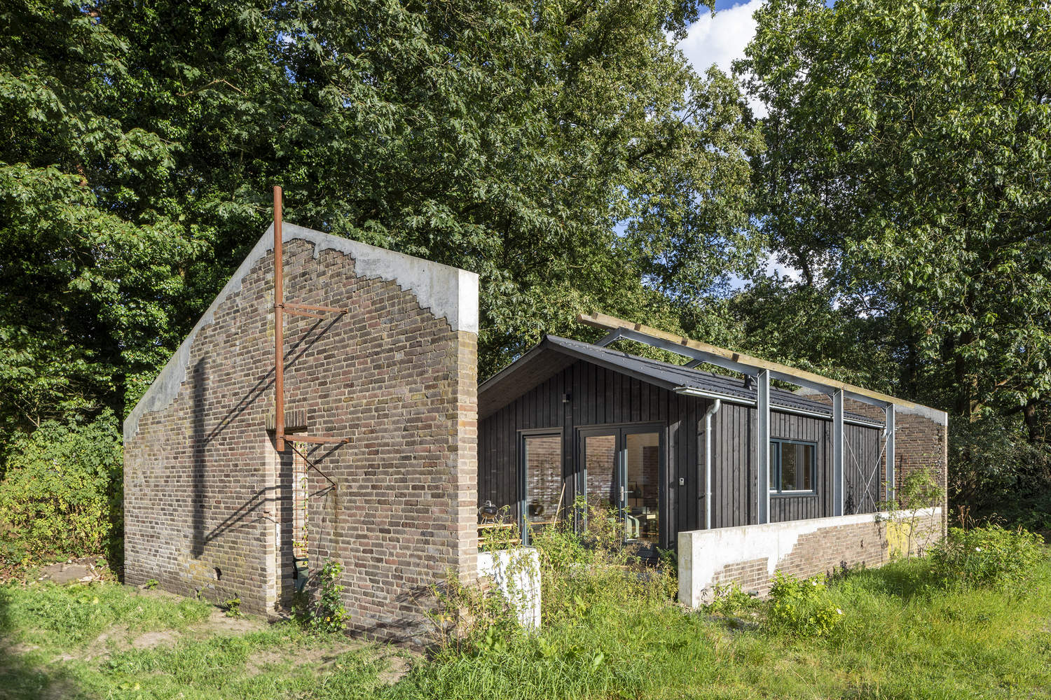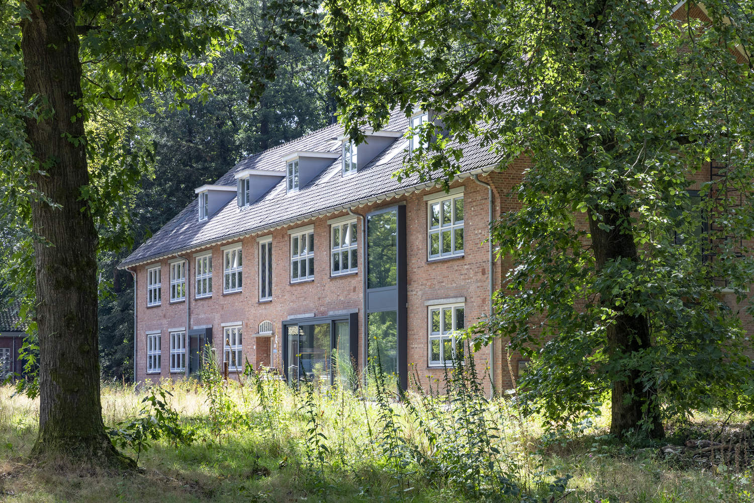 Buitenplaats Koningsweg began its life as two facilities, Kamp Koningsweg Noord and Zeven Provinciën. These were built in the orbit of the Deelen airfield, which during the Second World War was the largest German airfield in the Netherlands. The concrete military bunkers were disguised as farmhouses in an attempt to obscure their military purpose, allowing them to blend into the surrounding nature. These natural surroundings add another layer of significance: the project sits in the forests of the Veluwe, one of the Netherlands' most important natural areas, and the largest land-based Natura 2000-designated area in the country.