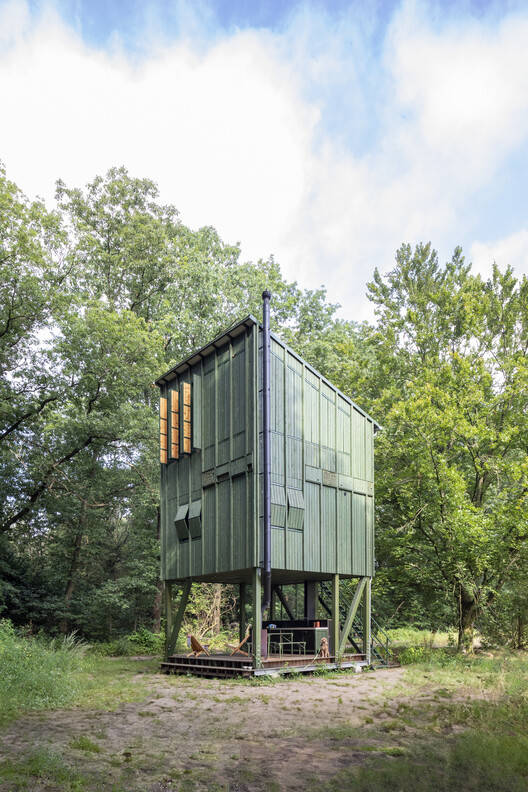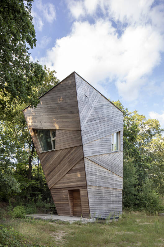 In the north of the site, the master plan includes eleven follies available for holiday rentals, which blend into the forest with quirky designs that play with the theme of disguise. These were selected through a design competition organized by KondorWessels Projecten and Buro Harro.