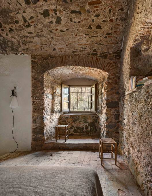 Text description provided by the architects. In La Vilella Baixa, this old hydraulic mill stands on a 3,000 m² plot surrounded by vineyards and olive trees. The disused mill, located along the Lloá road bordering the Montsant River, was transformed by our studio into a contemporary 200 m² home, through a project that stayed connected to its past and the nature surrounding it.
