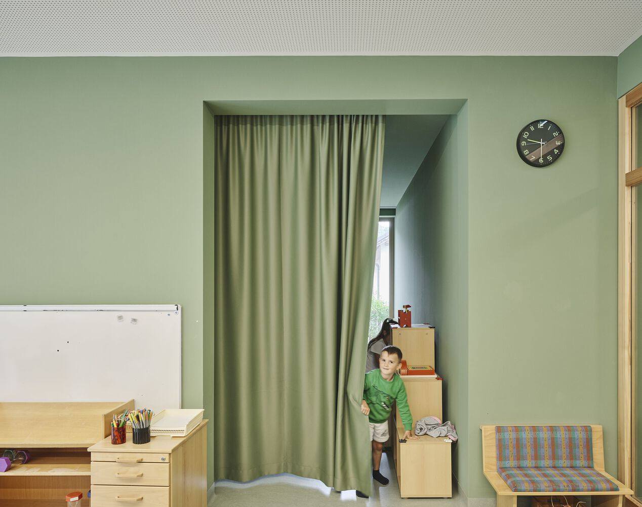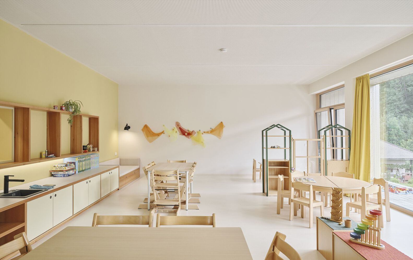在内部,空间的设计考虑到了温暖和欢乐。明亮的房间和周到的布局营造了一个让孩子们感到舒适、探索和成长的环境。