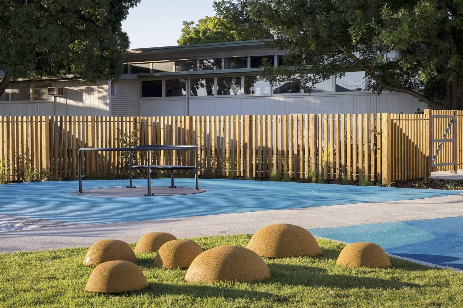 The project's integration between indoor and outdoor learning saw opportunity to reclaim natural landscapes within the school's centre and utilize their value to develop student's physical, cognitive, and social skills. Activity spaces, courtyards and playgrounds are centralized around the school's eldest trees, unifying historical and new site aspects. The building's layout balances engaging group learning areas with private retreat zones to accommodate students requiring attentive care. Each class features private sensory gardens, opens to adjacent outdoor common learning areas, and observation nodes enabling passive oversight and assistance. Shared resource spaces are versatile to allow lesson diversity, can function independently, and enable mixed teaching methods in different sizes and arrangements.