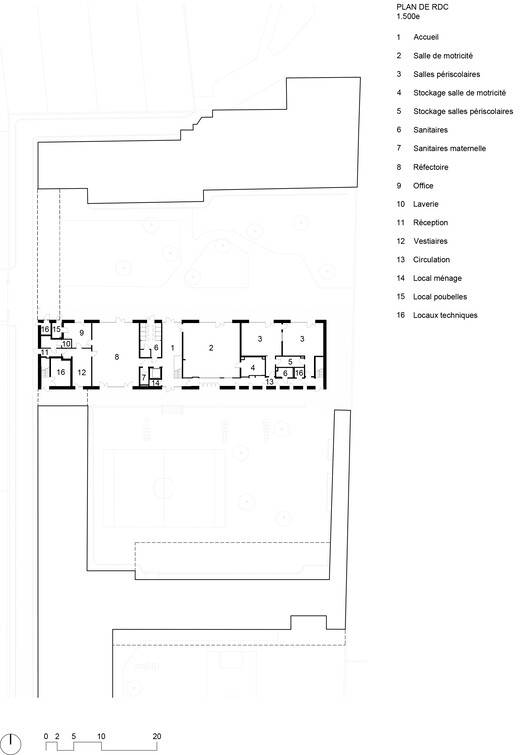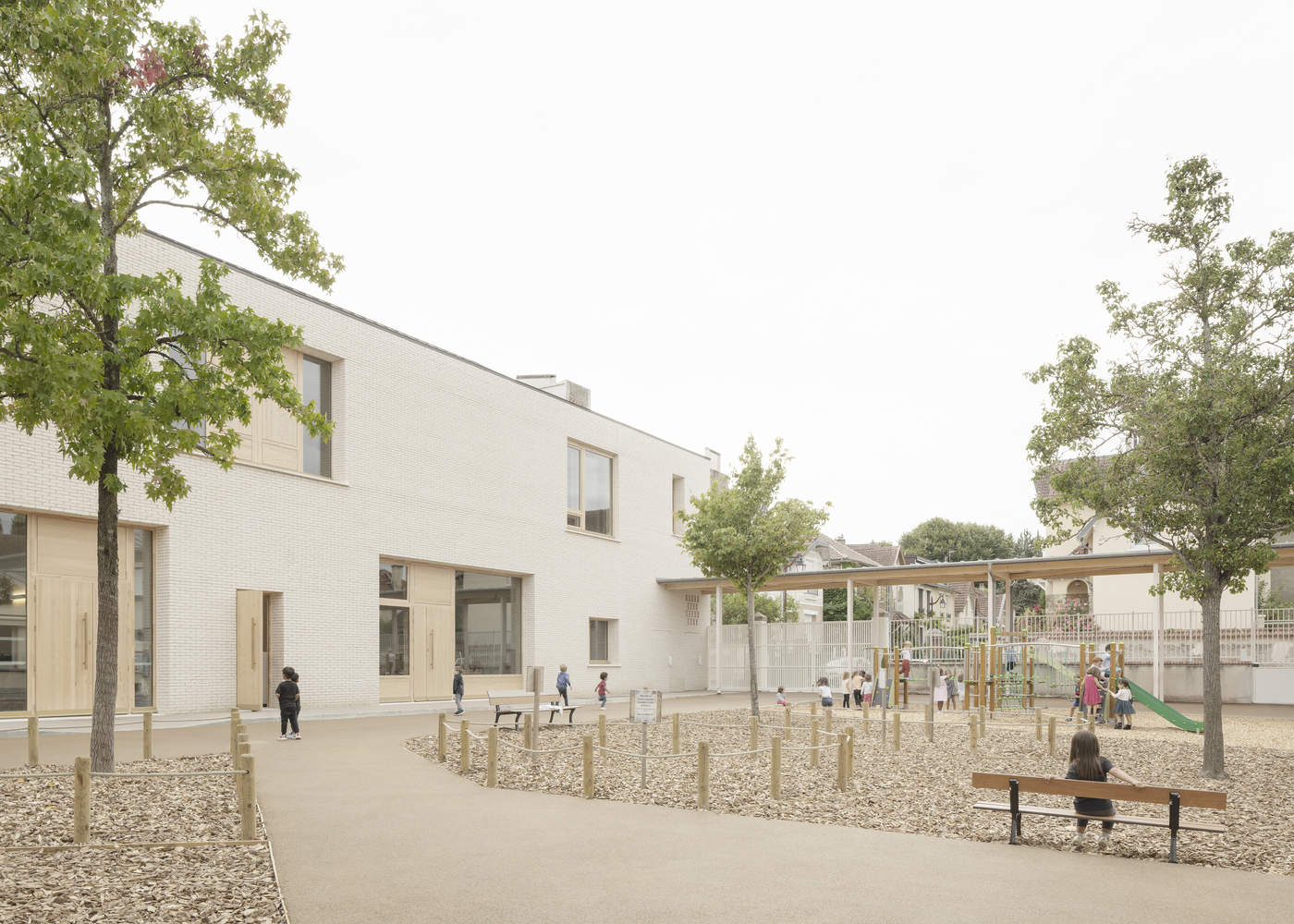 The new building is discreet on an urban scale but widely perceptible on the city block's scale. The school offers a harmonious whole to be seen from the neighboring accommodation. The project is an opportunity to redesign the access (nursery and elementary school). The new courtyard marks the entrance to the nursery school, now qualified and easily apparent from the street.