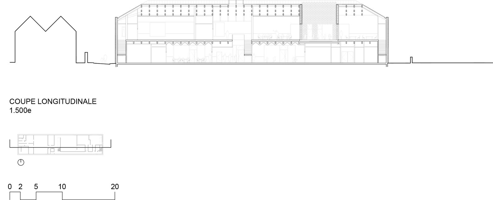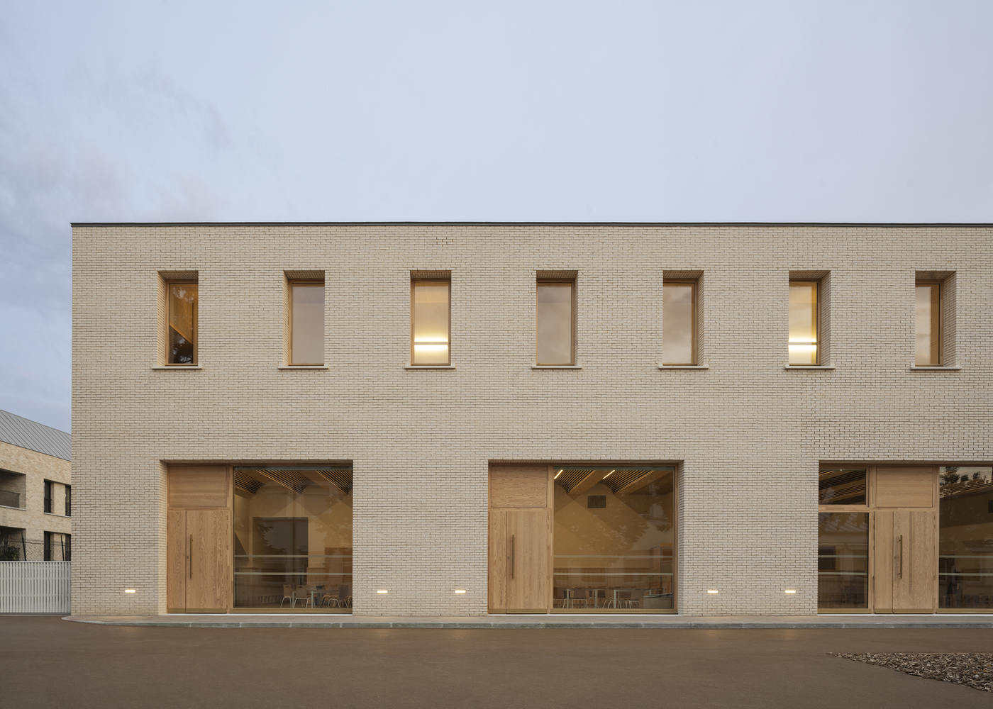 This is a building for nursery and elementary schools, but also for the music conservatory, it is located at the center of the system. This position, beyond its functional and educational interest, makes it possible to structure the voids, to give meaning back to the playgrounds, becoming singular and delimited places.
