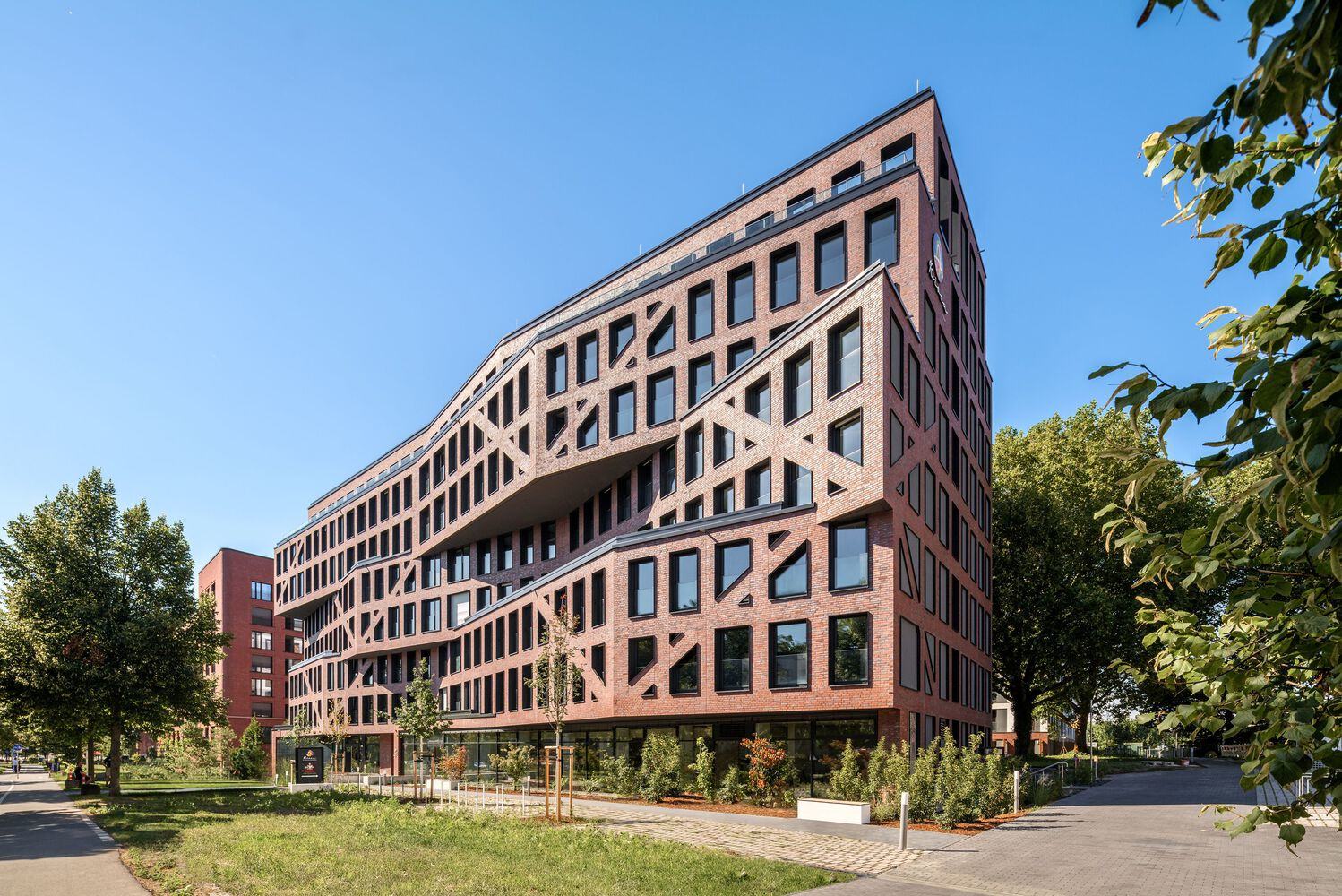 Text description provided by the architects. HWKN's new iLive Campus in Frankfurt, designed in collaboration with AI+P, addresses the younger generation's need for flexible and affordable living solutions. This consciously unique building occupies a large corner site adjacent to the Frankfurt School of Management and Finance and features 1,000 high-design apartment units for students, making it the largest planned student and serviced apartment project in Germany. HWKN, along with their client, the German-based iLive, and AI+P, incorporated another innovative living alternative: a lively, youth-oriented hotel, part of the Rioca Hotel group.