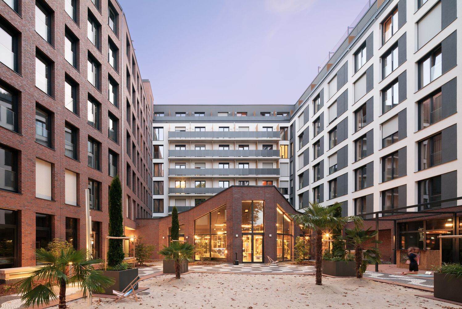 设计创新:iLive 法兰克福青年酒店和共享生活校园的设计极具创新性。它满足了年轻一代对灵活且负担得起的生活解决方案的需求,提供了 1000 套高设计公寓,还引入了面向年轻人的酒店。一楼的社交中心丰富多样,包括邮箱区、欢迎酒吧和游戏走廊等,还提供了众多联合工作机会,适应了混合工作时间表的流行趋势。这种对长期住宿概念的重新定义,在规模、入住时间和社交方面提供了多种选择。