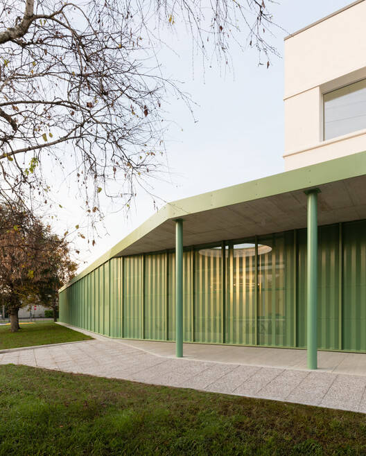 Text description provided by the architects. The Luigi Einaudi Primary School in San Cipriano, Roncade-Treviso-Italy, has undergone a significant renovation project aimed at creating a modern, stimulating, and welcoming learning environment for all students. Classrooms and the gymnasium have been refurbished, while a wing has been demolished and rebuilt to optimize spaces and make them more functional.