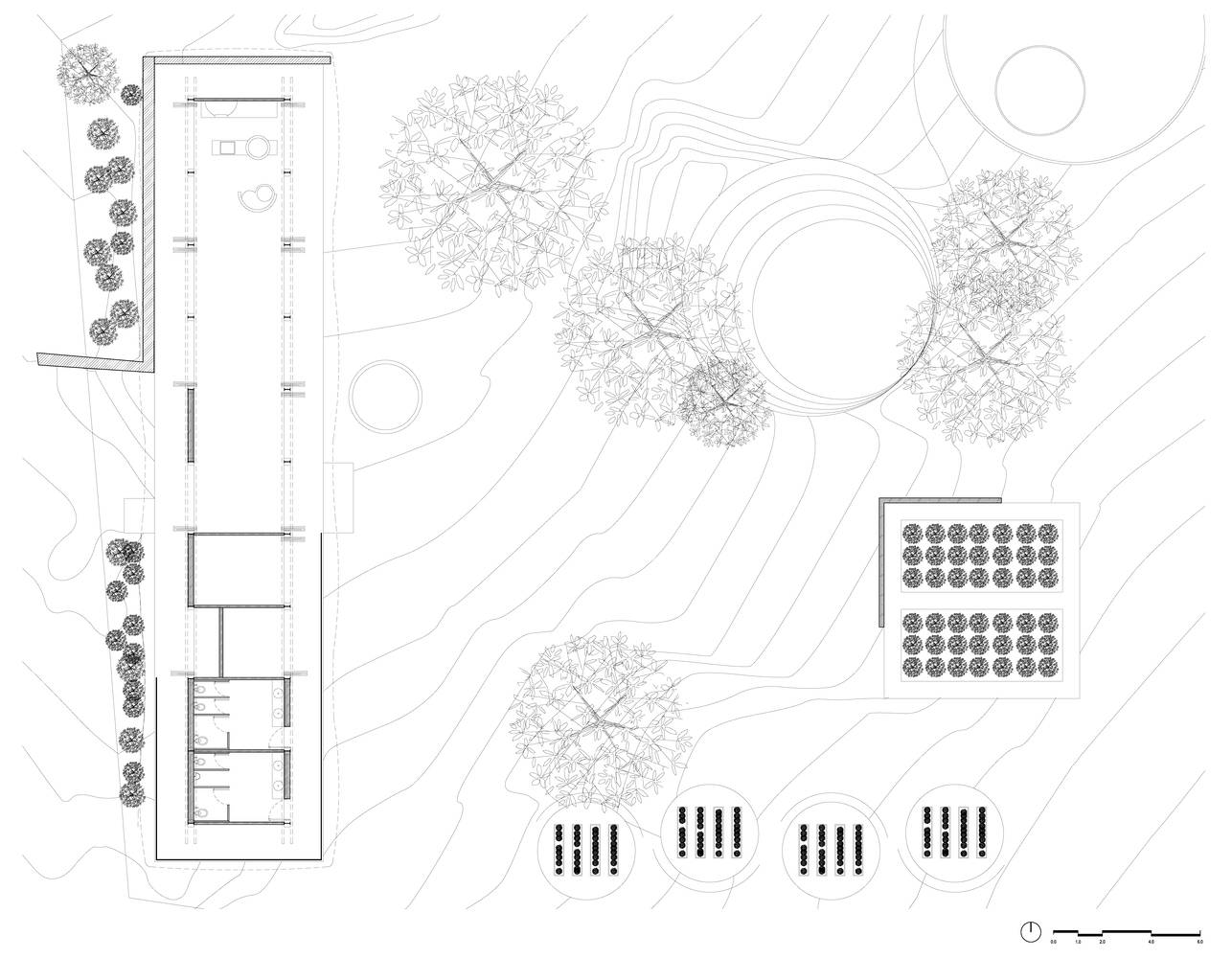 该计划,无论是外部还是内部,通过将学生融入学校开放区域进行的再生过程中,将水处理湿地、社区花园、堆肥以及绵羊和鸡舍作为教育提案的一部分,变得完全具有教育意义。教学人员大多来自这个社区,他们将促进当地人与空间之间更紧密的社会关系。