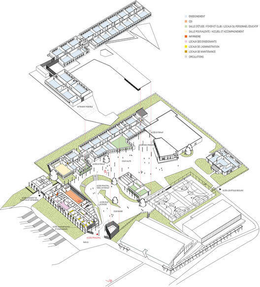 Text description provided by the architects. The project is designed to accommodate 750 students and a Unité Localisée pour l'Insertion Scolaire (ULIS).