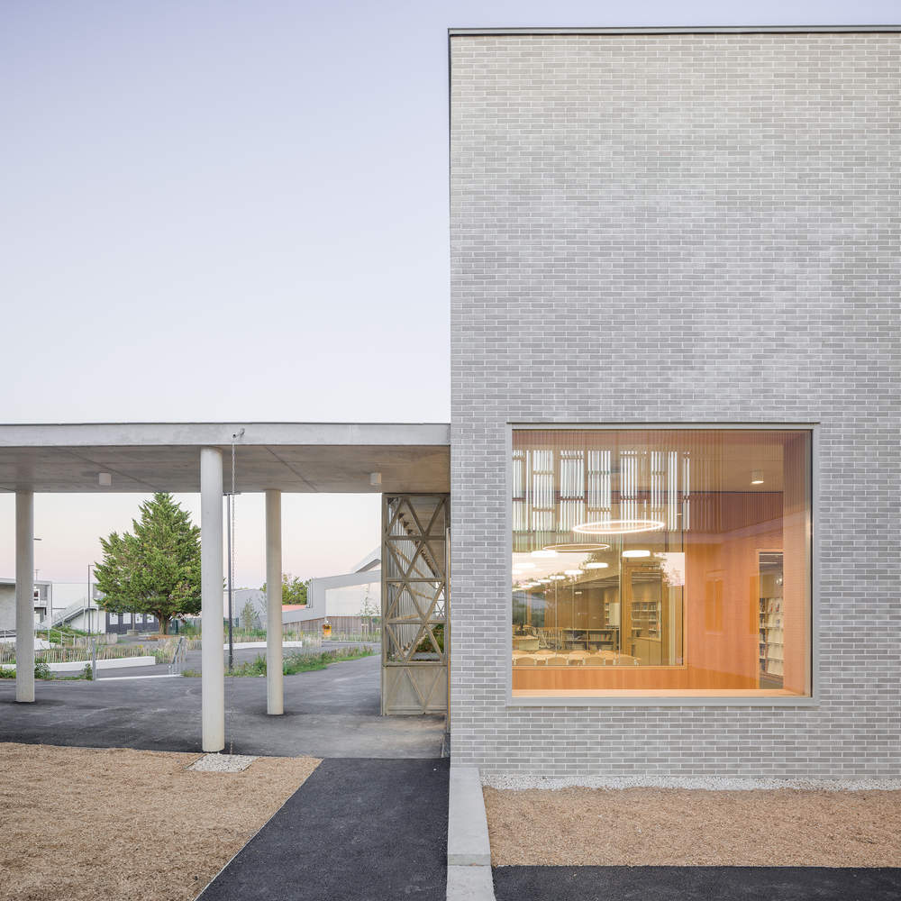 The school thus affirms its presence in the community today, but also in the future, since these perspectives have also been thought through with the presence of a future sports facility for which a land reserve has been set aside. The design of the portico and the volume of the extension express the institutional value of the establishment, while the warm materiality of the bricks, the warm colors of the corten steel, the motif of the bicycle rack and the reintroduction of nature into the courtyard announce from the very threshold of the establishment the qualities of atmosphere, space and use of a place where one should feel good to dispense and receive knowledge, to work in the life of the establishment.