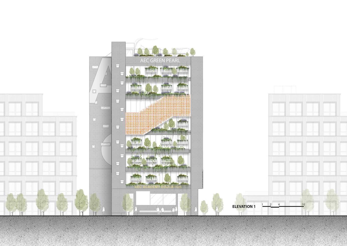 Text description provided by the architects. Located in the vibrant heart of the young city of Da Nang, AEC 4B Tower features 9 floors and 1 basement. The project showcases an innovative architectural design that harmonizes with natural greenery while maximizing the use of natural energy through sustainable strategies.