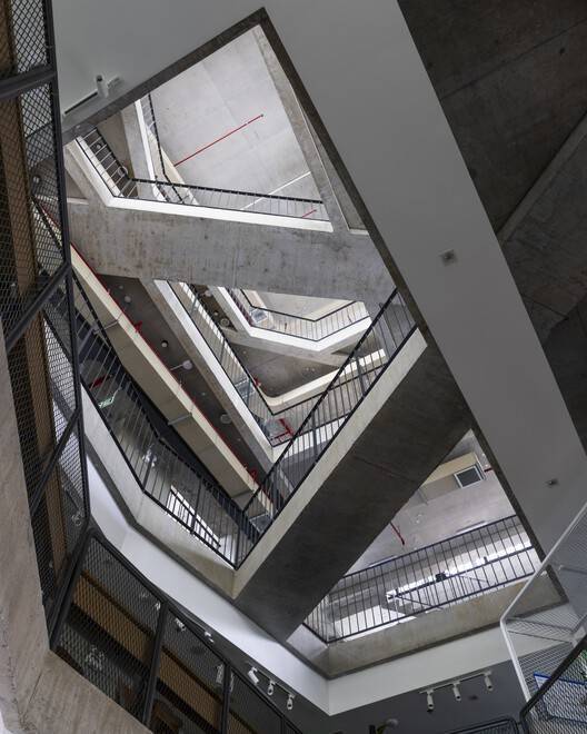 打造理想学习环境:4B Tower 以其独特的设计和材料选择,营造出既具吸引力又充满活力的学习环境。建筑线条与混凝土材料共同作用,使其成为年轻学习者练习国际语言的理想之地,体现了该教育设施追求的核心价值。