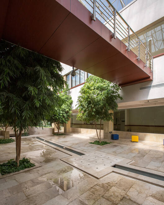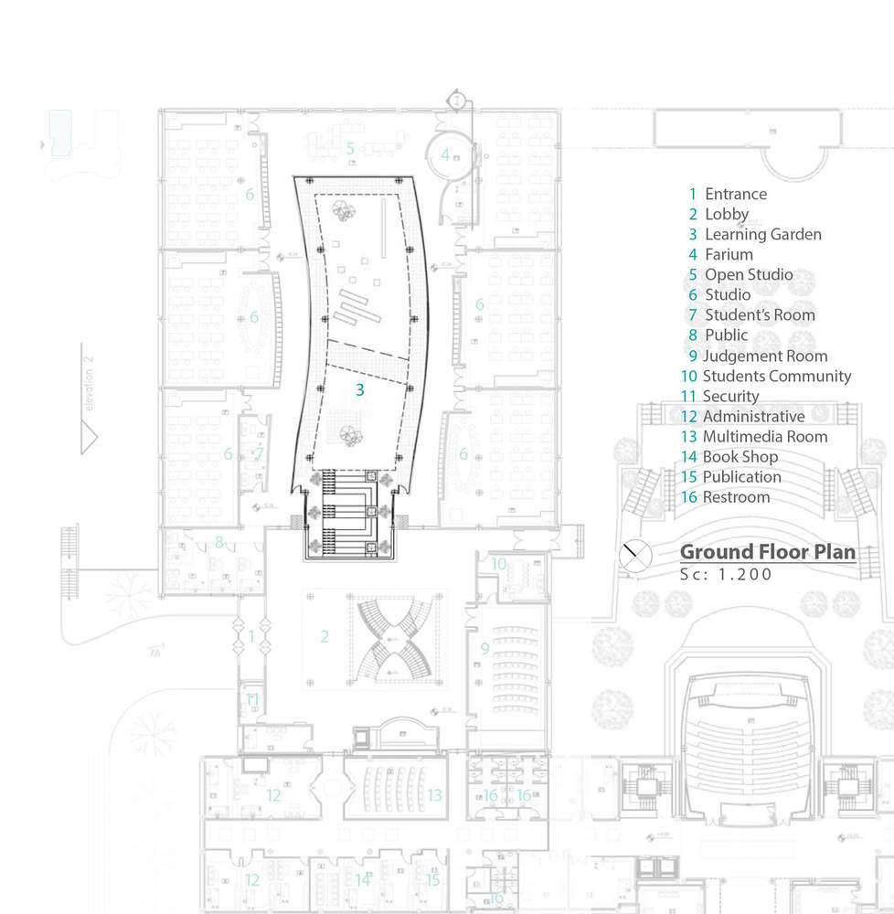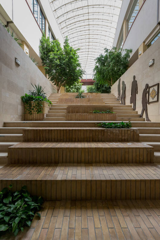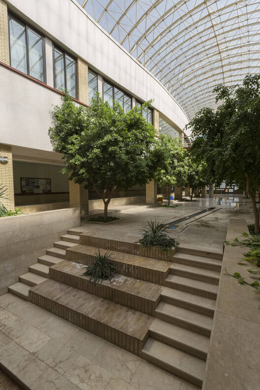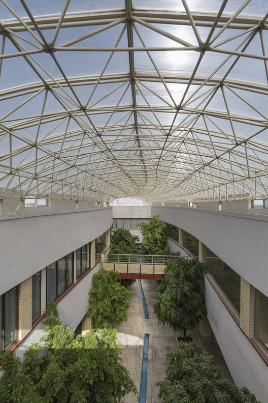 Text description provided by the architects. In Iran, there are usually fewer opportunities for architects to design educational buildings. A few years ago, a typical building was granted to the Faculty of Architecture to rebuild it according to their future needs. It was a skeletal building structure in two floors with a U-shaped space and an underground space. A central space was then created, as a vital environment for learning.