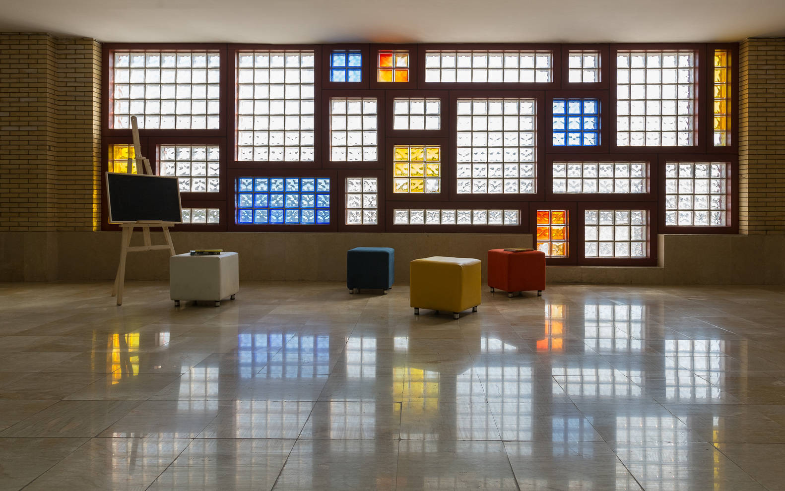 - Applying features of Iranian architecture in the spaces: overlapping frames, transparency, reflection, sense of presence in Persian garden, and using elements such as water, light, colored glass, porches, bridges, stairs, and columns (memories).