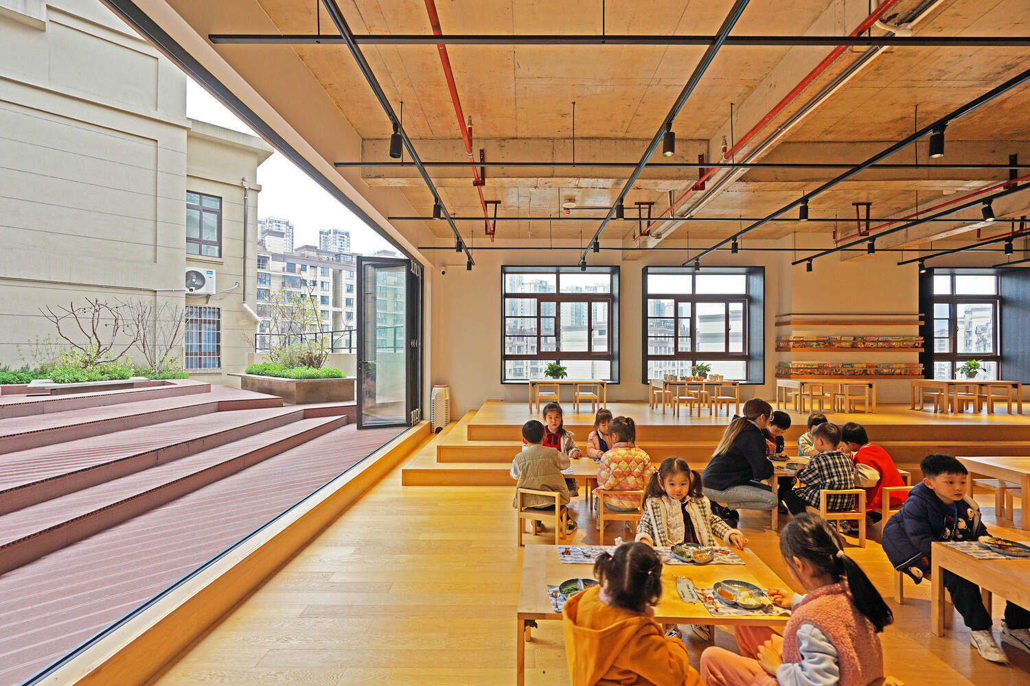 自然融合与教育契机:此项目巧妙地将 Kiyo 自然景观融入幼儿园设计。借由建筑设计,让孩子们在日常中接触并学习场地特征与历史,贵州独特喀斯特地貌景观成为设计源泉,餐厅等室内空间模拟地形,露台游乐区与台阶设计亦呼应户外,使孩子感受城市地形,这不仅提供教育机会,更开启他们对自然与家乡的认知之旅。