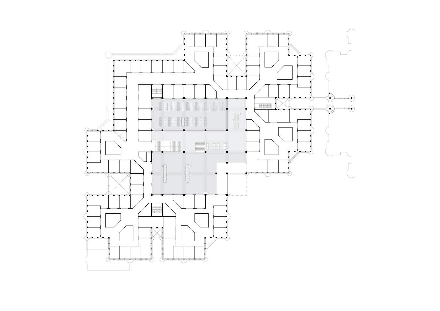 建筑师提供的文字描述Text description provided by the architects. Commissioned by Leiden University, De Zwarte Hond has completed the circular renovation and extension of the former Cluster Zuid building of the Faculty of Humanities. Architect Joop van Stigt designed Cluster Zuid for the Faculty of Humanities of Leiden University in the late 1970s. This impressive example of structuralist architecture was re-inaugurated on 8 October as Herta Mohr. It now offers 11,400 m² of space, plus car parking, with more than 700 teaching spaces and self-study places, two lecture theatres, work and meeting rooms, and common rooms. The building also houses the libraries of Leiden's African Studies Centre and the Middle Eastern Studies program.