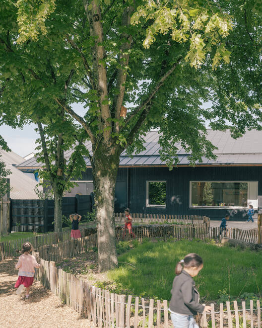 In terms of climate engineering, the architects and their team opted for biomass energy by equipping the school with a wood-fired boiler. To cool the classrooms in case of overheating, simplicity once again prevails over technology: natural ventilation is favored on the upper floor of the educational building. By combining a well-thought-out layout with a low-tech wood and straw envelope, and by promoting renewable energies and bio-based materials, the Jean de la Fontaine school in Tours stands as an example and pioneer in terms of sobriety and construction economy. Thanks to these qualities and the project's honest approach, the project has been included in the scope of the E+C- label with a deserving score: positive energy 3 and carbon reduction 1.