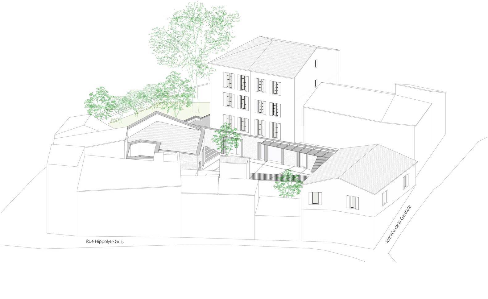 建筑师提供的文字描述Plòarchitects是一家专注于法国普罗旺斯地区历史中心干预工作的公司,无论是通过修复破旧建筑、创造公共空间还是城市规模研究。该工作室的项目旨在展示这些类型学在应对当今和未来的生态和气候挑战方面的相关性。