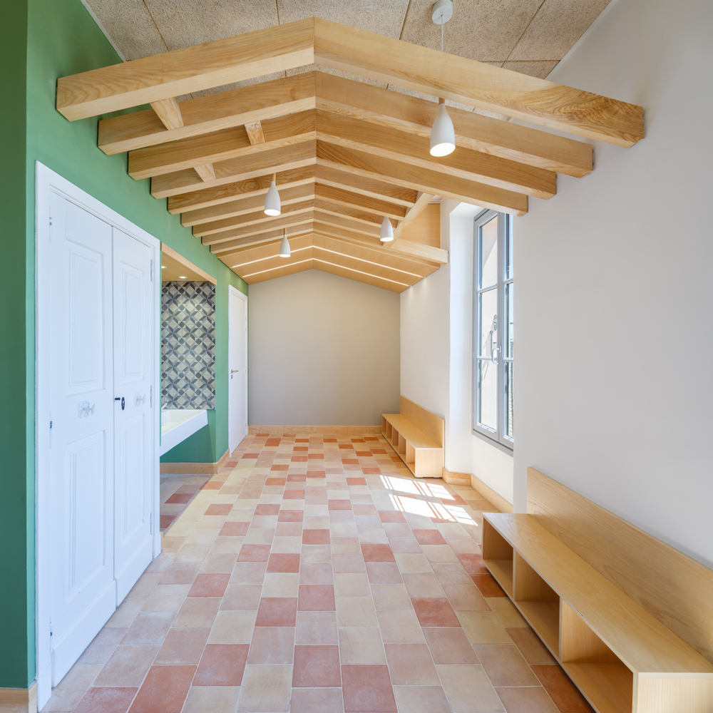 In terms of thermal performance, we focused primarily on summer comfort, which is crucial in the Côte d’Azur with its mild winters. This is why we favored hemp-lime plaster instead of traditional insulation for the exterior walls. We sought to adorn the spaces with local, bio-sourced materials or those outside the standard industrial catalogs. The floors are terracotta, and the ceilings are made of wood fiber.