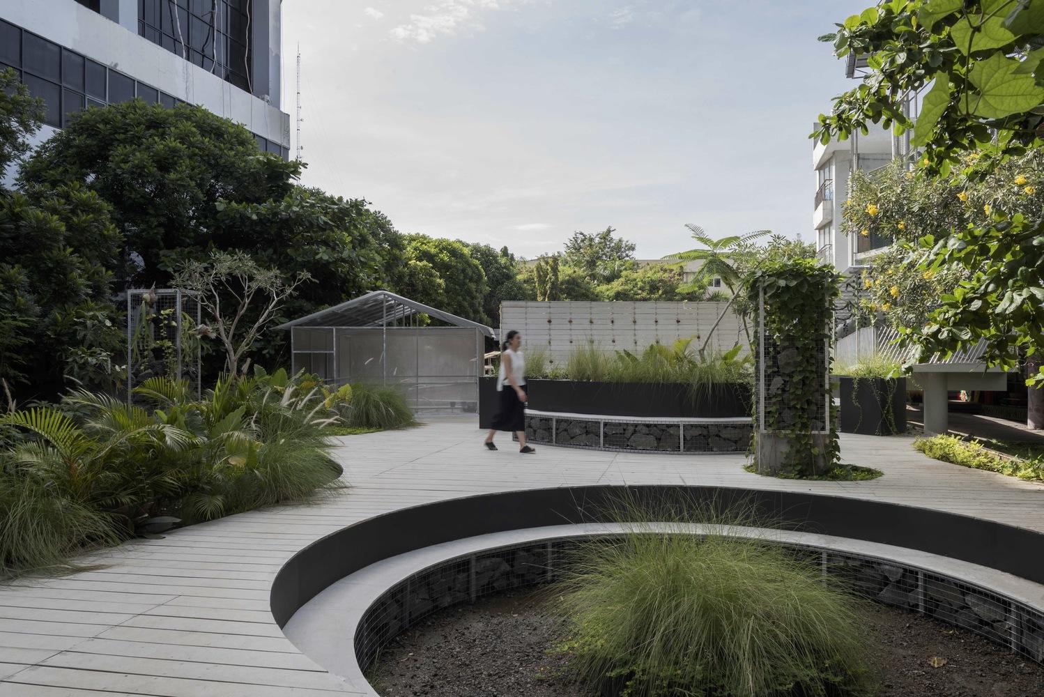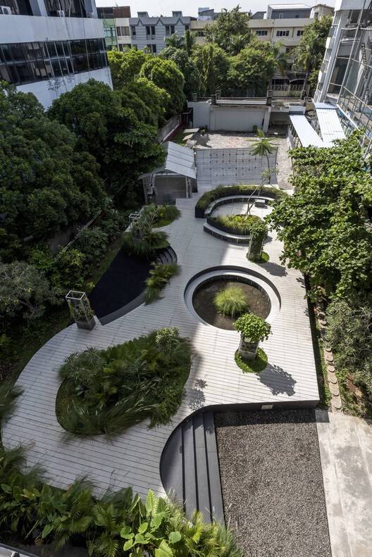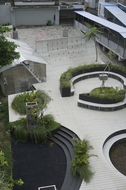 Text description provided by the architects. This project stemmed from the concept of repurposing a plot of land originally earmarked for the future expansion of the school, transforming it into a vibrant, lush outdoor learning environment. The vision for this new space is to offer students and teachers a variety of areas, each with unique typologies, where they can collaborate and congregate, all while immersed in greenery.