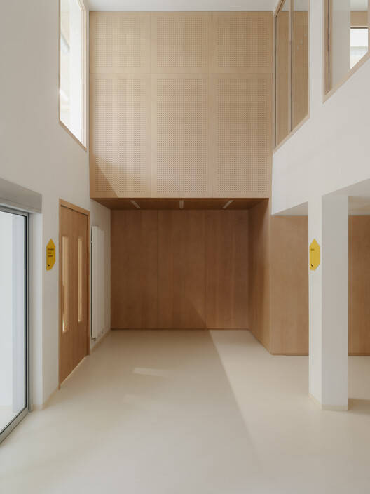 Text description provided by the architects. Charles-Foix Hospital is located south of the town of Ivry-sur-Seine, within the former "hospice for the incurable" designed by Théodore Labrouste in 1873. Owner of the university hospital center, the Public Assistance of Paris Hospitals (AP-HP) has implemented to Sorbonne University the two upper levels of the Pasteur building, to install the Autonomy center there. This is the first research and experimentation center on the autonomy of people in a hospital environment, bringing together users, researchers and clinicians. Built in 1964, the Pasteur building is built on three levels, including a low, semi-buried garden level that houses the hospital pharmacy, a ground floor with main access to the street and a floor also accessible by two exterior staircases. The structure of the building consists of a post-beam frame with brick masonry infills. This constructive device allows flexible reconfiguration and ease of interior spaces and facades.