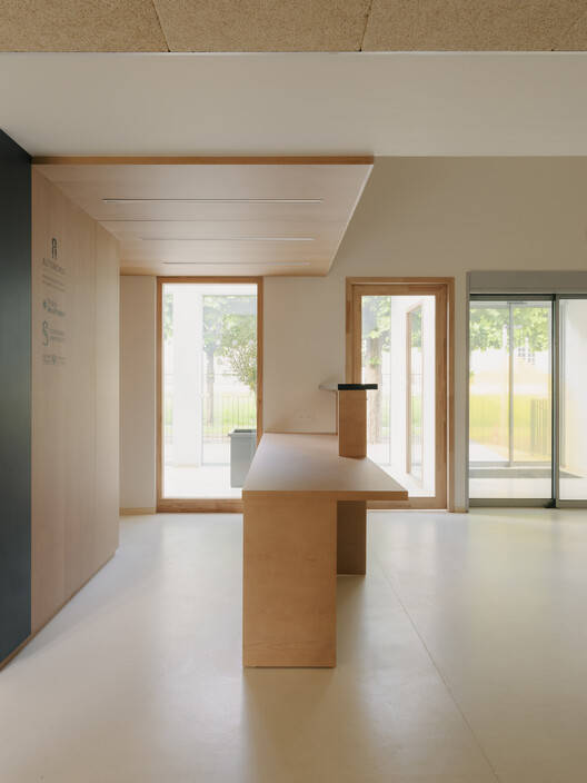 材料选择与环境适应性:在材料的选择上,建筑师采用了木材作为主要的室内装饰元素,创造了一个温暖而熟悉的氛围。悬铃木和山毛榉的使用,不仅因其柔和的色彩为空间增添了温馨感,还通过其自然属性强化了建筑与环境的和谐共生。此外,立面的隔热和覆层处理,不仅提升了建筑的热舒适性,也展现了对可持续发展和环境保护的承诺。