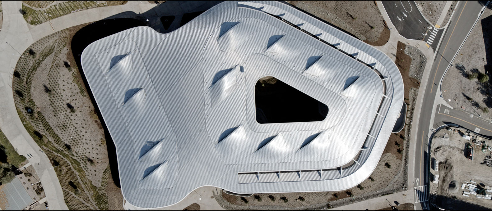 可持续性和环境适应性:大楼的设计考虑了沙漠气候的影响,两英亩的屋顶作为主要遮阳装置,通过日光、眩光和太阳能热增益分析优化屋顶几何形状,减少了照明和制冷的能源负荷,提高了用户的视觉和热舒适度。LEED白金认证的获得,进一步证明了项目在可持续性方面的卓越表现。