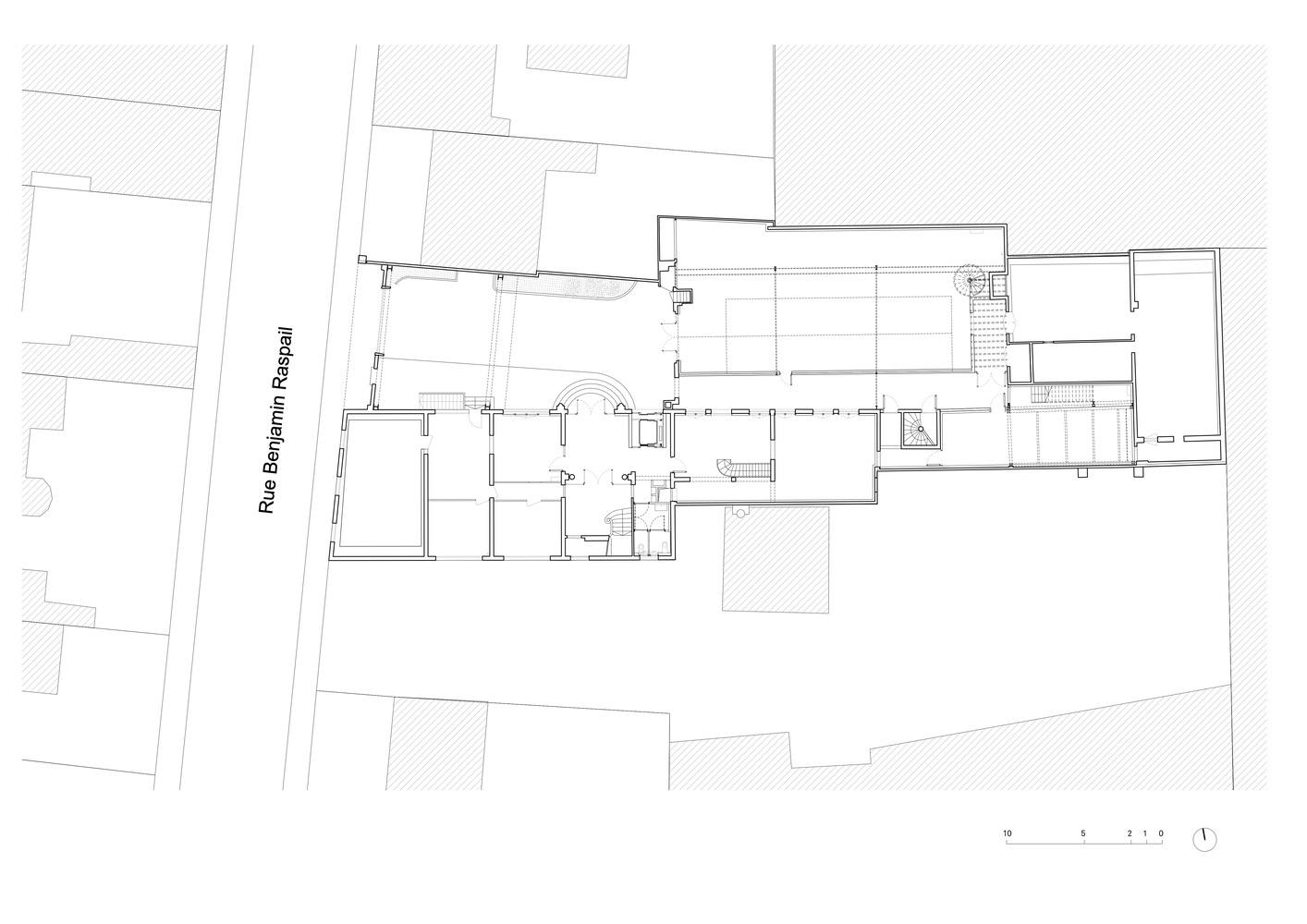 The design work has preserved the front steps while making the building accessible to all through the precise installation of an elevator within the building. This new vertical connection element subtly becomes a focal point in the facade through the specific design of the joinery and, thanks to the transparency of its structure, allows natural light to illuminate the shared landings. At the rear of the plot, the project focuses on preserving the characteristic structures of the production spaces (hall and sheds), and the generosity of the volumes they offer, while controlling the climatic conditions to enable new activities. The construction systems, once highlighted, provide clarity to the different spaces and generate atmospheres unique to each period of the site.