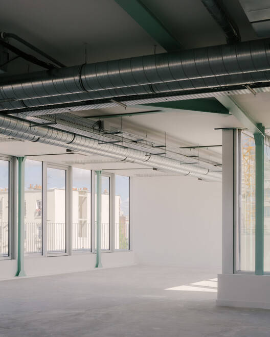 Text description provided by the architects. A Composite Block - The transformation of this industrial composite block in the city of Malakoff allows the creation of office spaces and workshops within a new architectural sequence that combines environmental requirements, constructive poetry, and memory of the site. The renovation project offers the opportunity to understand the inherent qualities of the various elements that make up the building, as well as the construction systems specific to each period and use, in order to make them visible and intelligible. The layering of successive extensions becomes the architectural material for this intervention, offering a new coherent narrative throughout the whole plot.