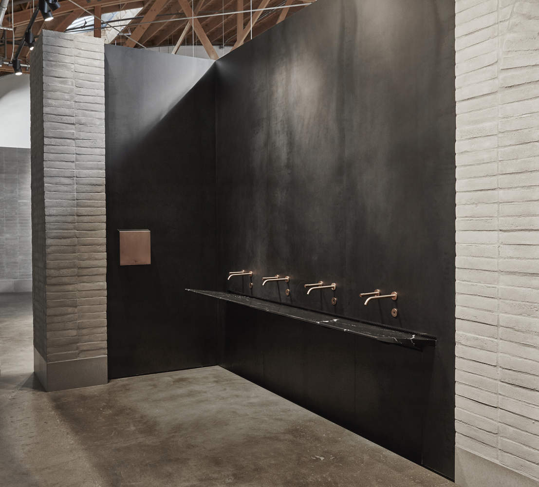 This simple and timeless format provides the setting for showcas¬ing The Splash Lab. The muted palette of materials has been selected with the intention of al¬lowing the user to better appreciate the qualities of light, proportion, and sur¬face while allowing The Splash Lab products to take centre stage. Explora¬tion of the tectonic relationships between materials, and experimenting with surface textures became an important focus of our material approach.